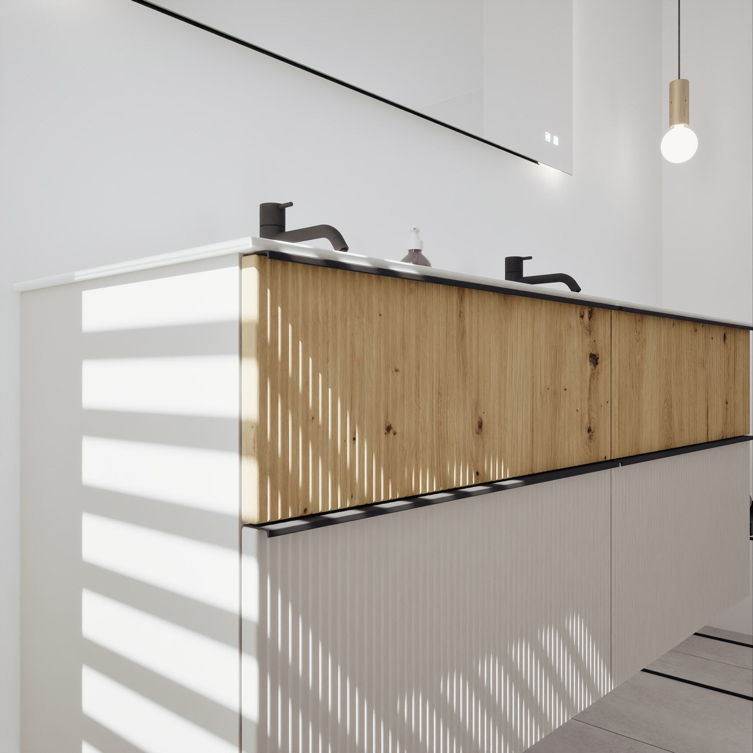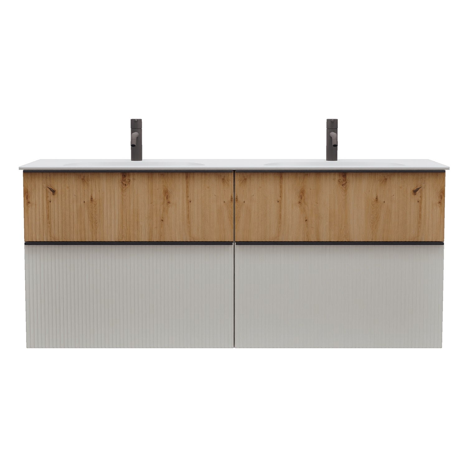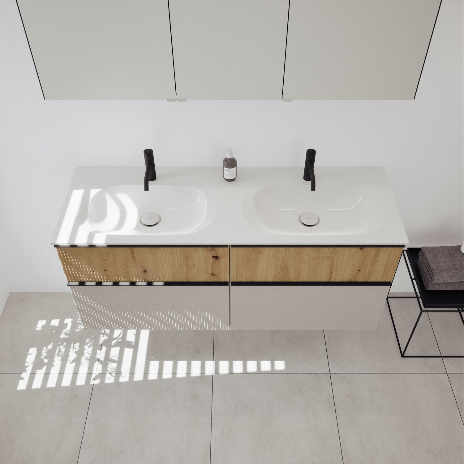 burgbad Fiumo 2.0 Mineralguss-Waschtisch mit Waschtischunterschrank 142 cm, mit Griff G0200