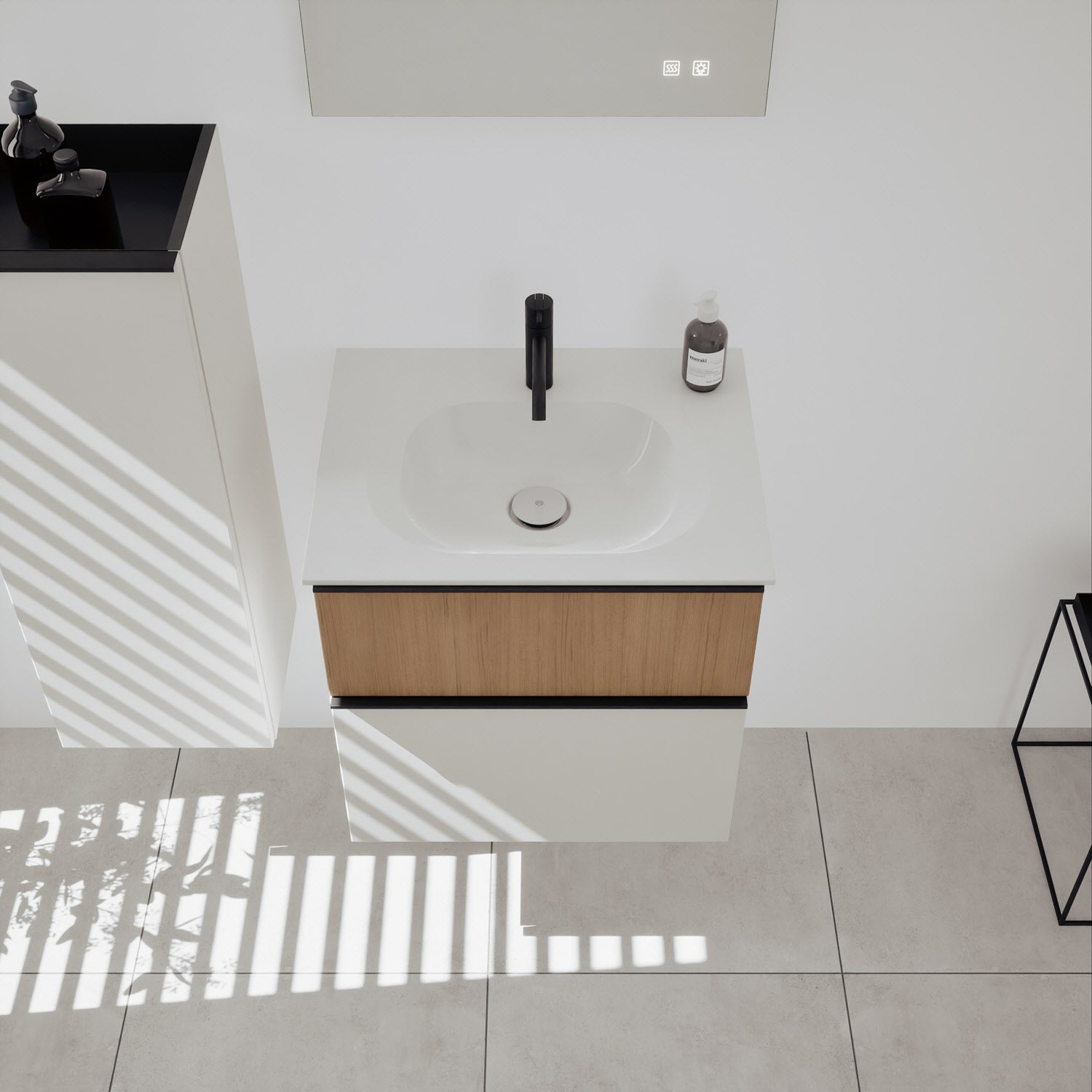 burgbad Fiumo 2.0 Mineralguss-Waschtisch mit Waschtischunterschrank 62 cm, mit Griff G0200