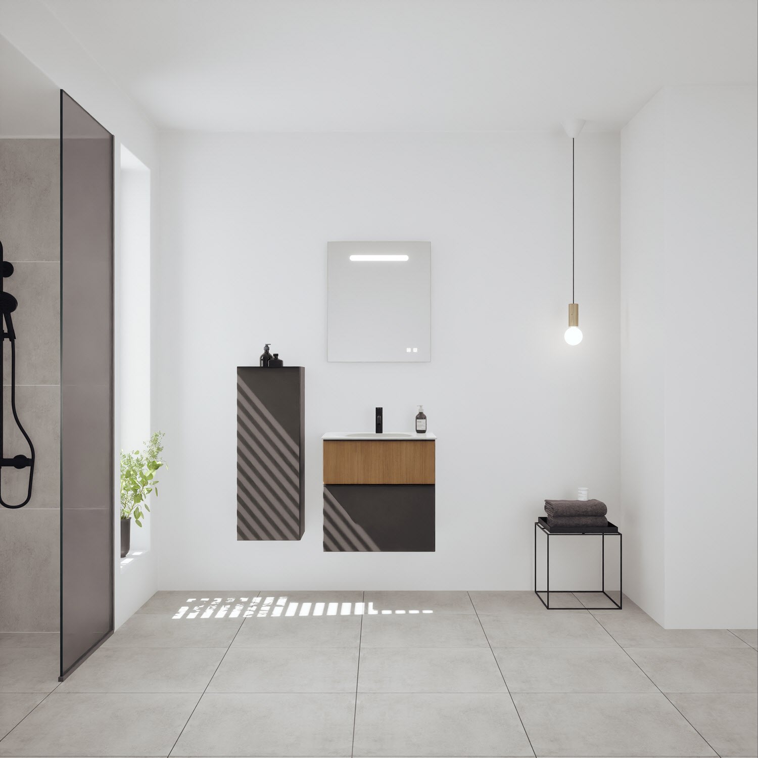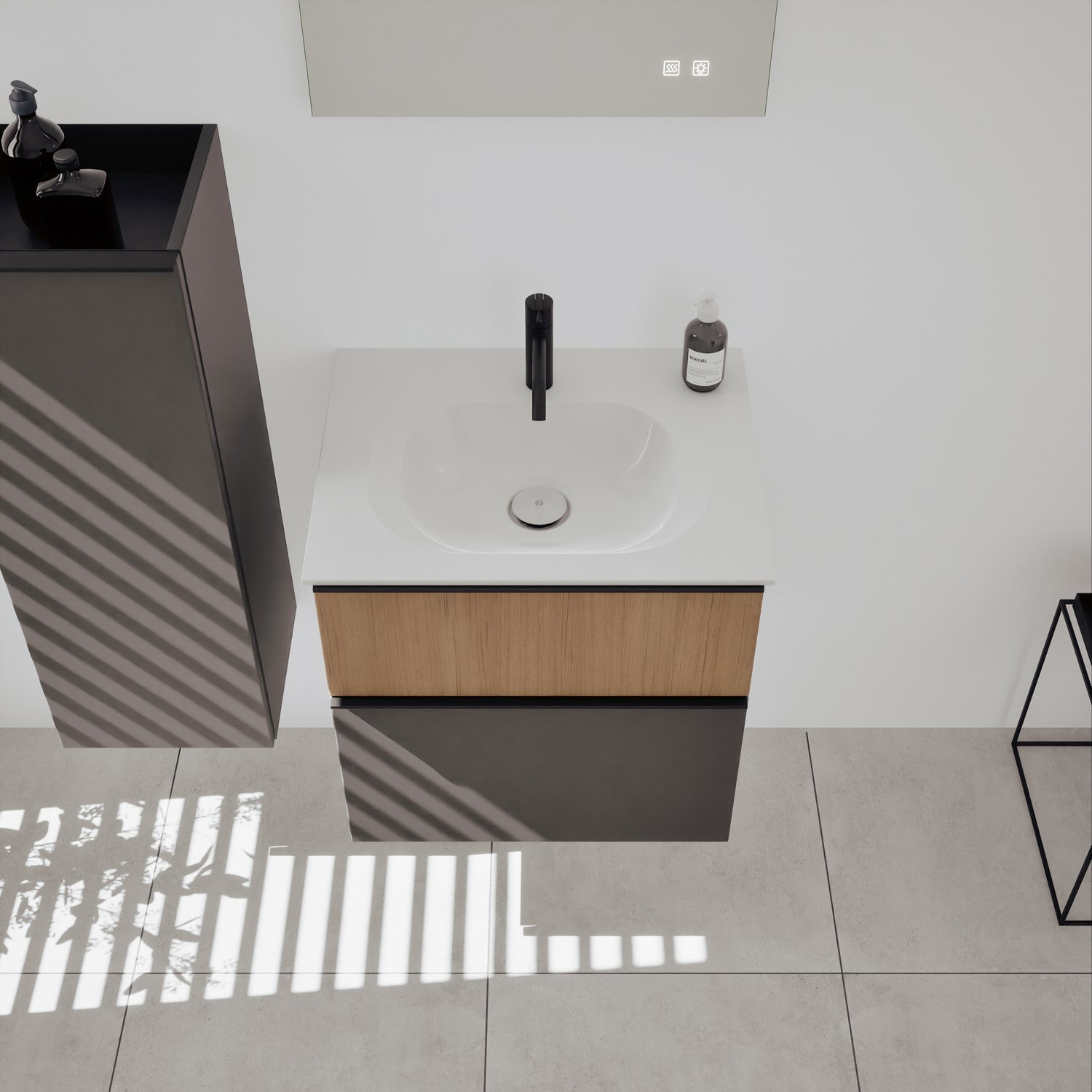 burgbad Fiumo 2.0 Mineralguss-Waschtisch mit Waschtischunterschrank 62 cm, mit Griff G0200