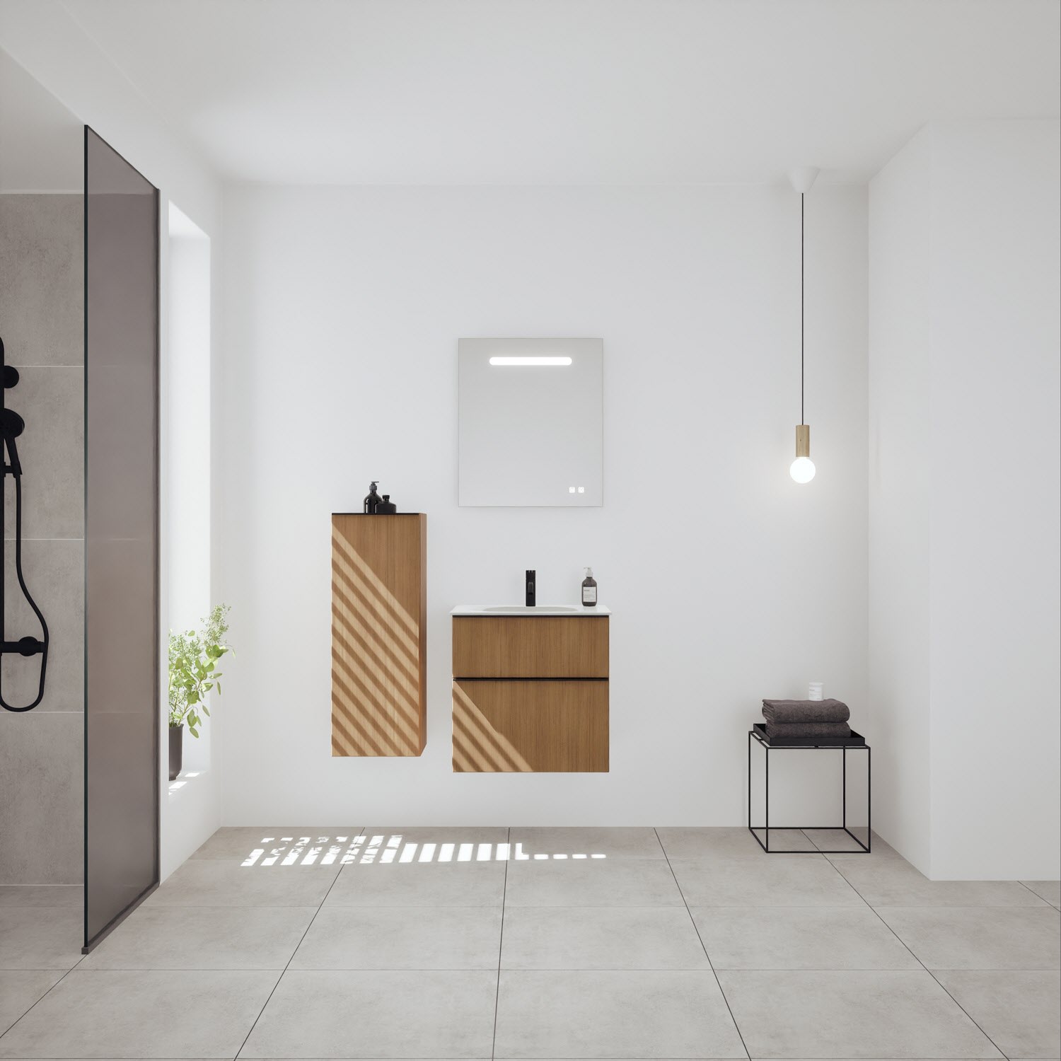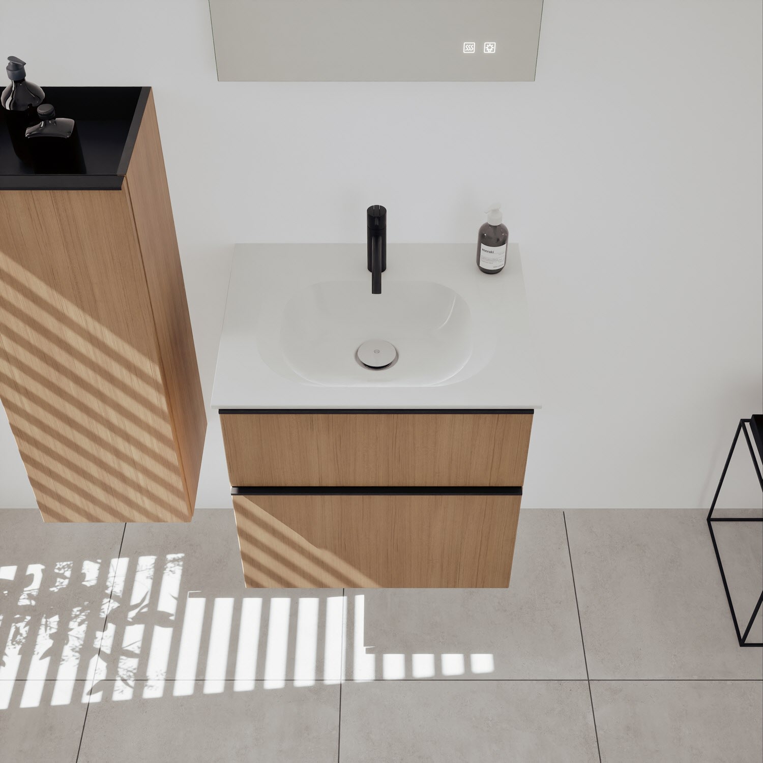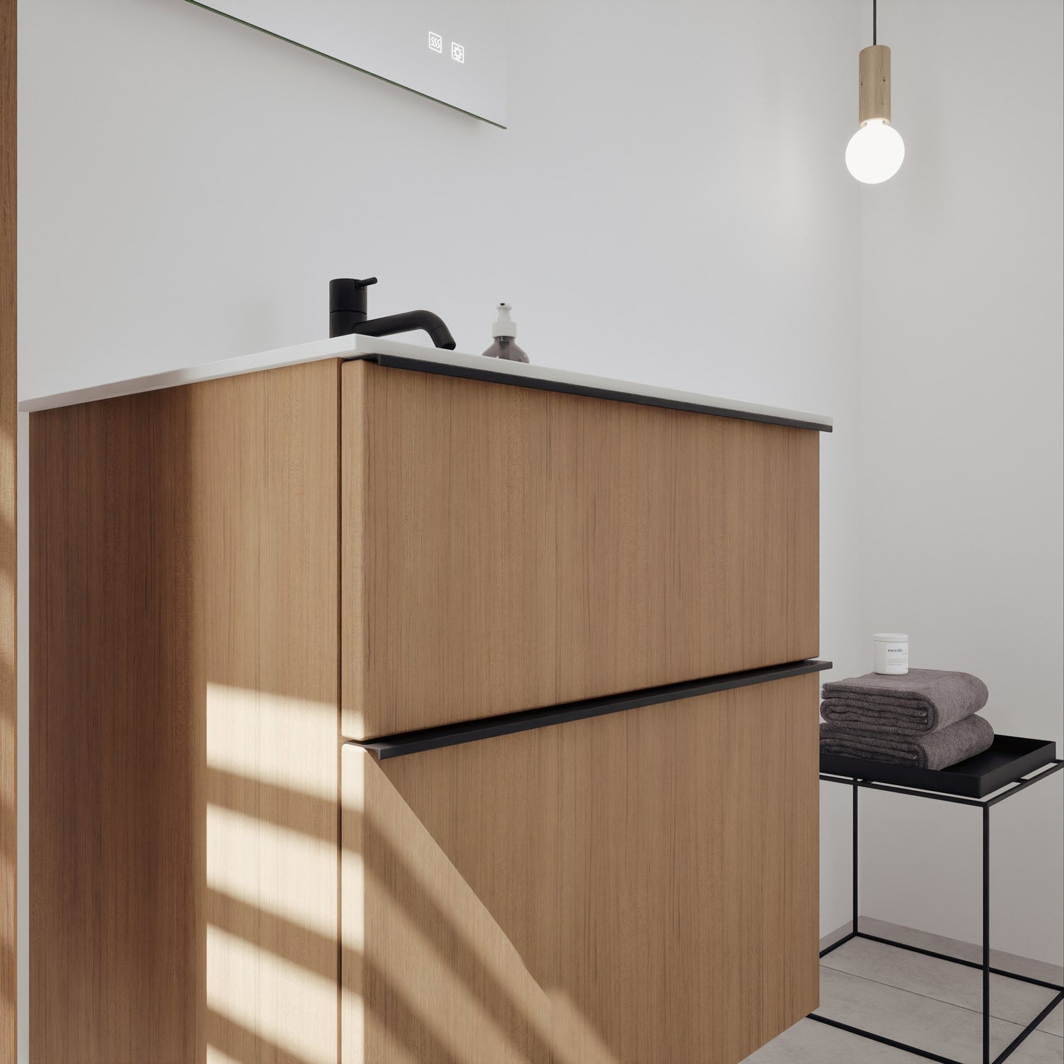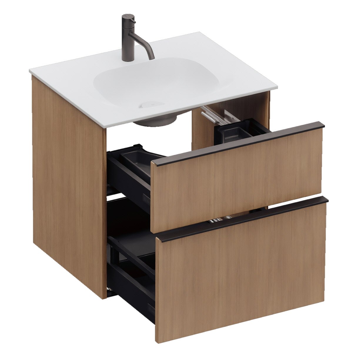 burgbad Fiumo 2.0 Mineralguss-Waschtisch mit Waschtischunterschrank 62 cm, mit Griff G0200