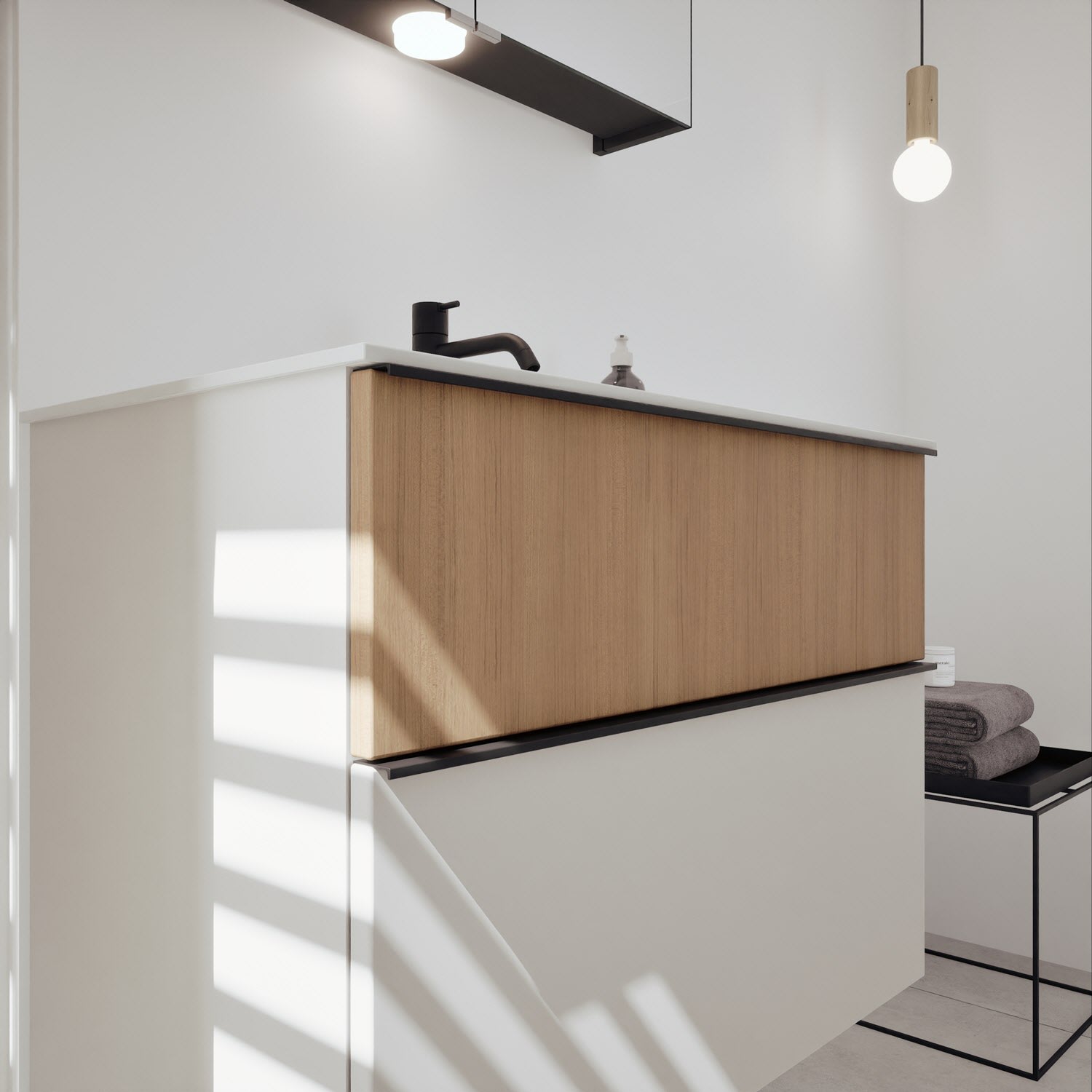 burgbad Fiumo 2.0 Mineralguss-Waschtisch mit Waschtischunterschrank 82 cm, mit Griff G0200