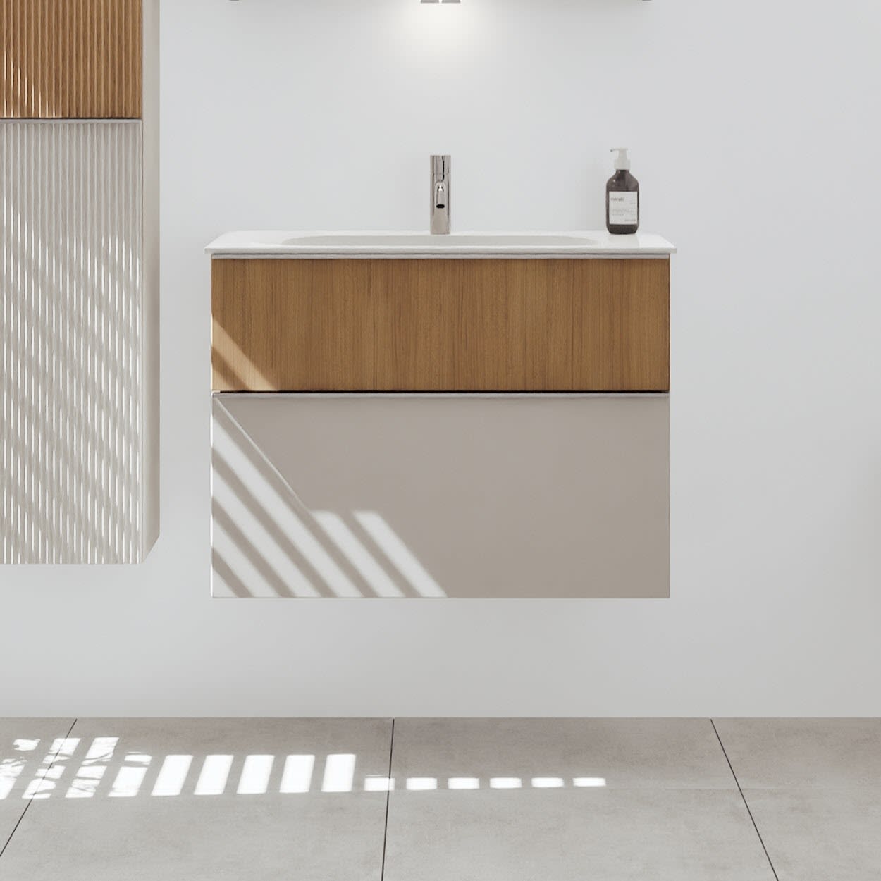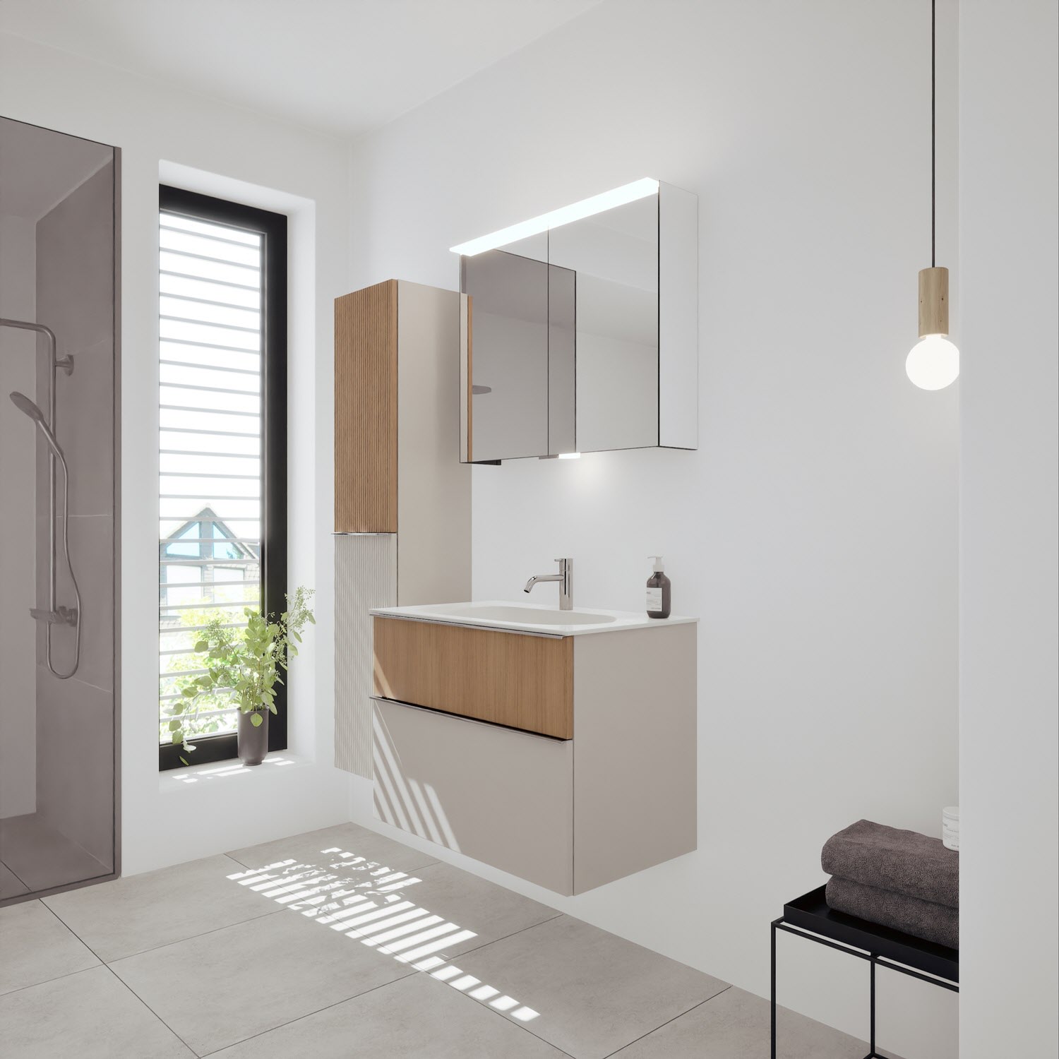 burgbad Fiumo 2.0 Mineralguss-Waschtisch mit Waschtischunterschrank 82 cm, mit Griff G0146