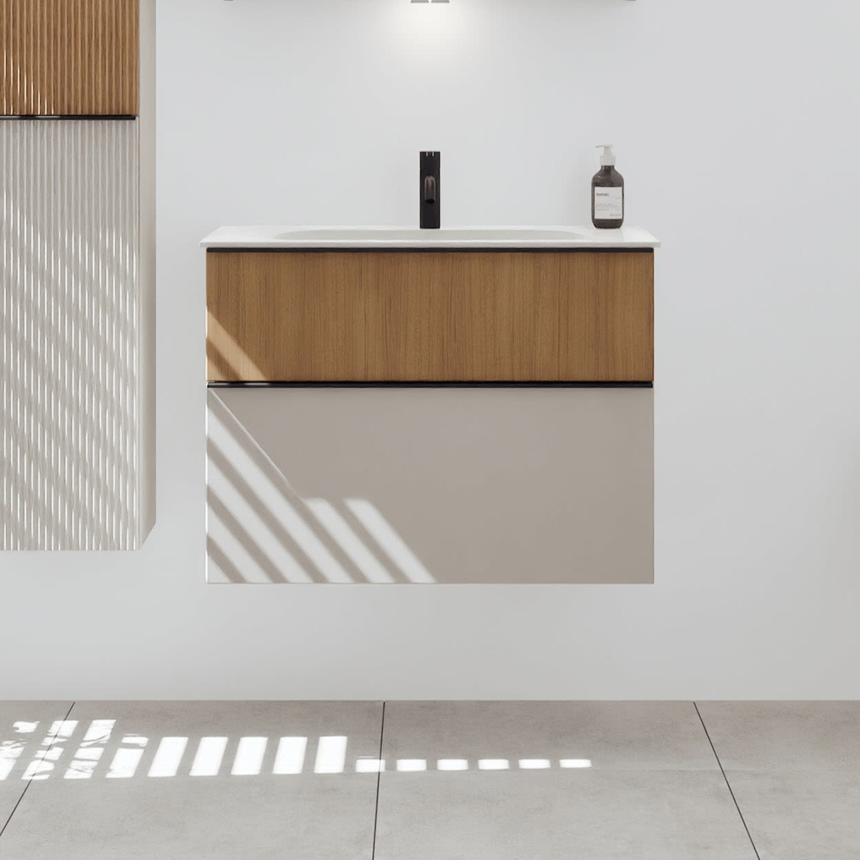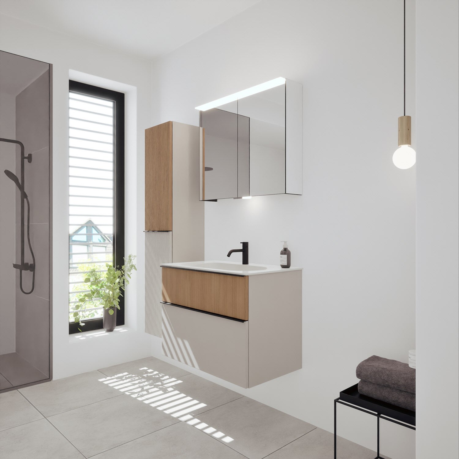 burgbad Fiumo 2.0 Mineralguss-Waschtisch mit Waschtischunterschrank 82 cm, mit Griff G0200