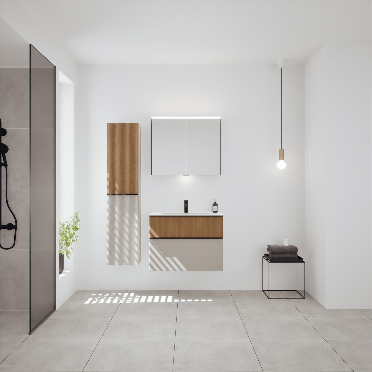 burgbad Fiumo 2.0 Spiegelschrank 80,6 cm mit LED-Aufsatzleuchte und Waschplatzbeleuchtung, 2 Spiegeltüren