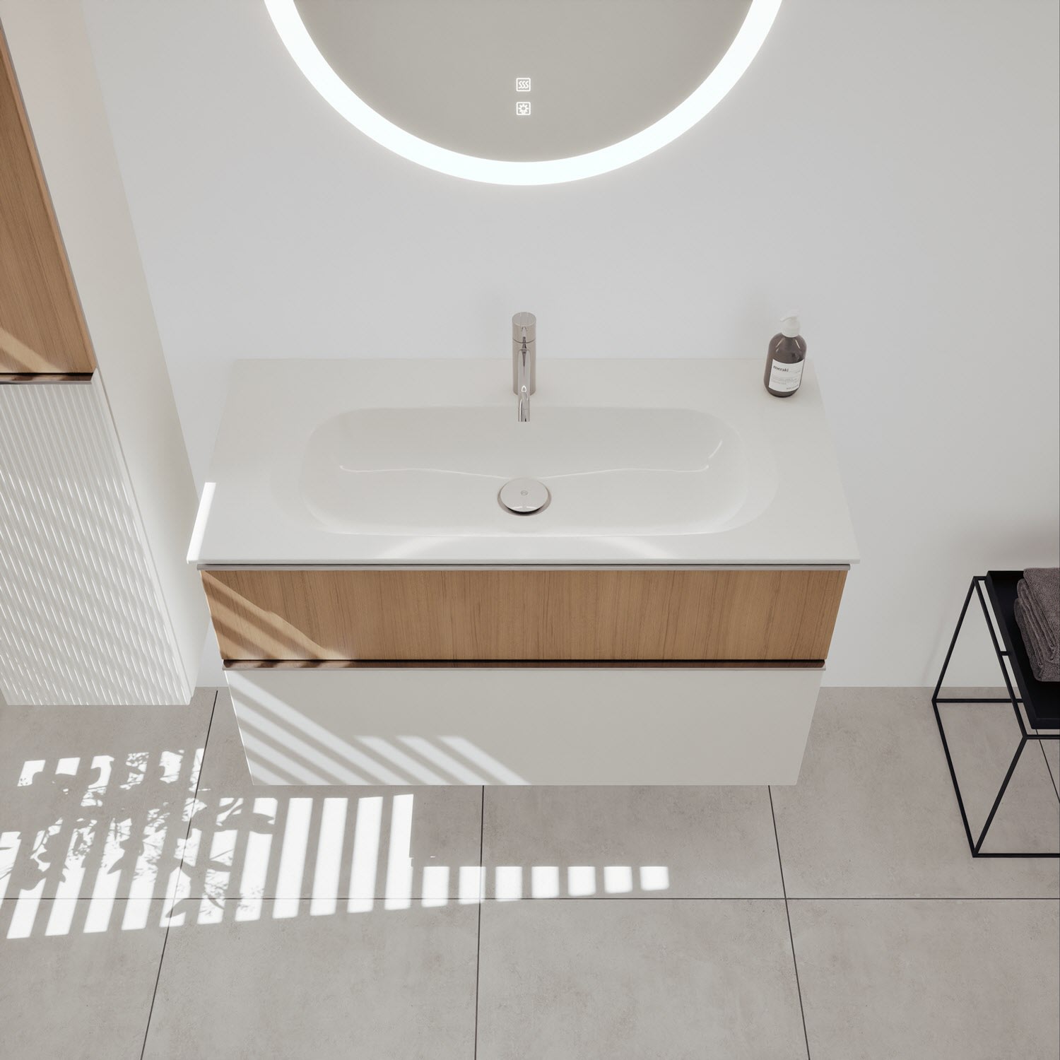 burgbad Fiumo 2.0 Mineralguss-Waschtisch mit Waschtischunterschrank 102 cm, mit Griff G0146
