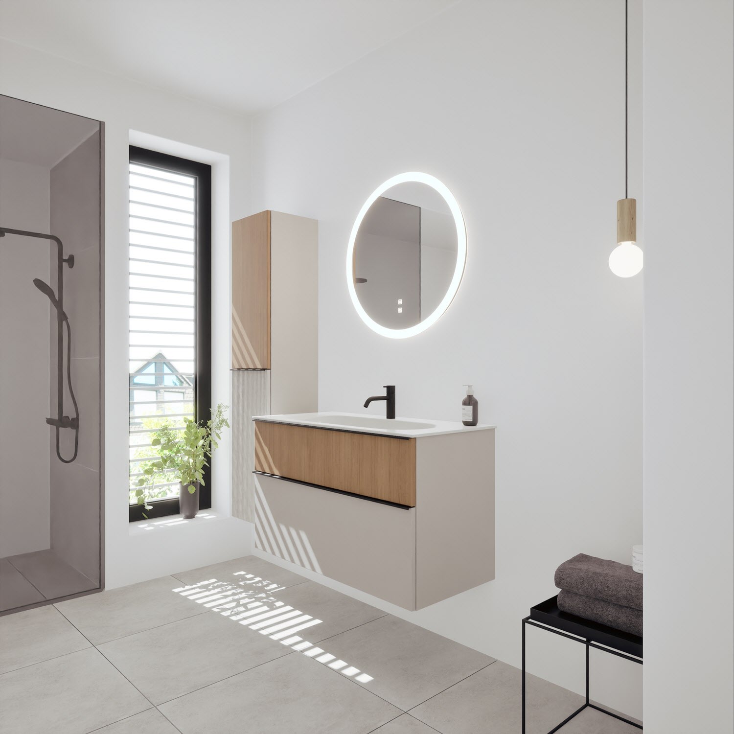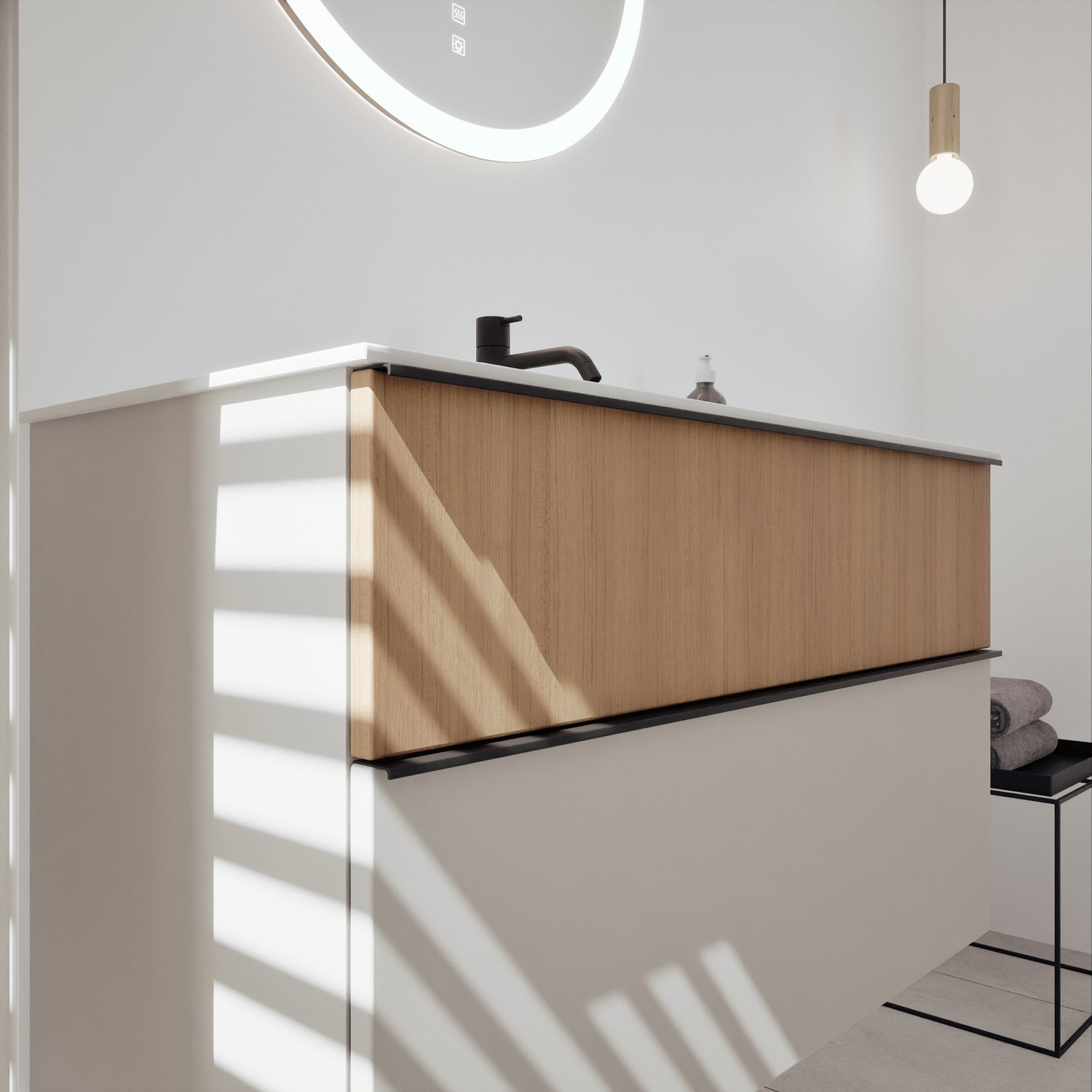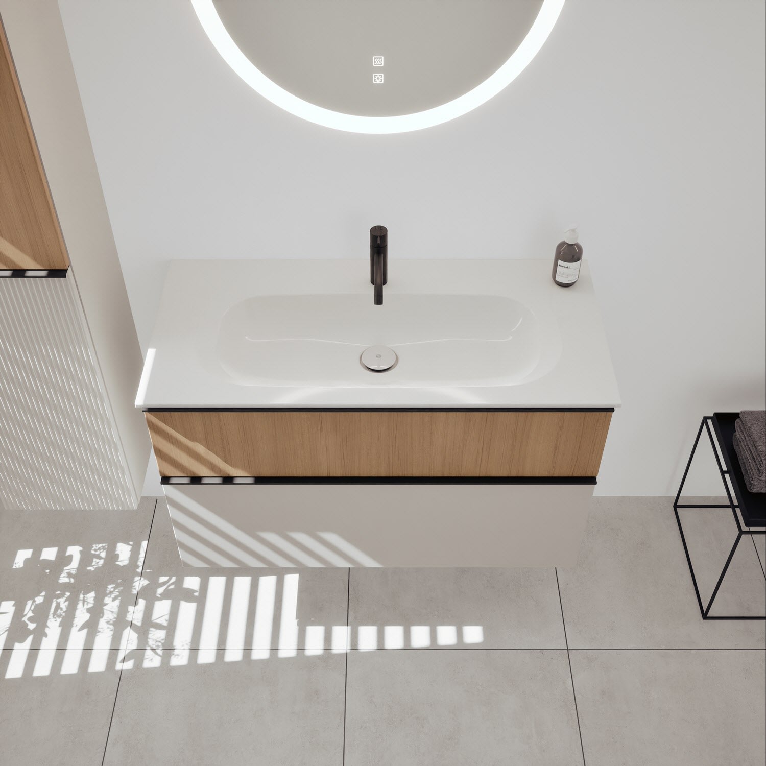 burgbad Fiumo 2.0 Mineralguss-Waschtisch mit Waschtischunterschrank 102 cm, mit Griff G0200
