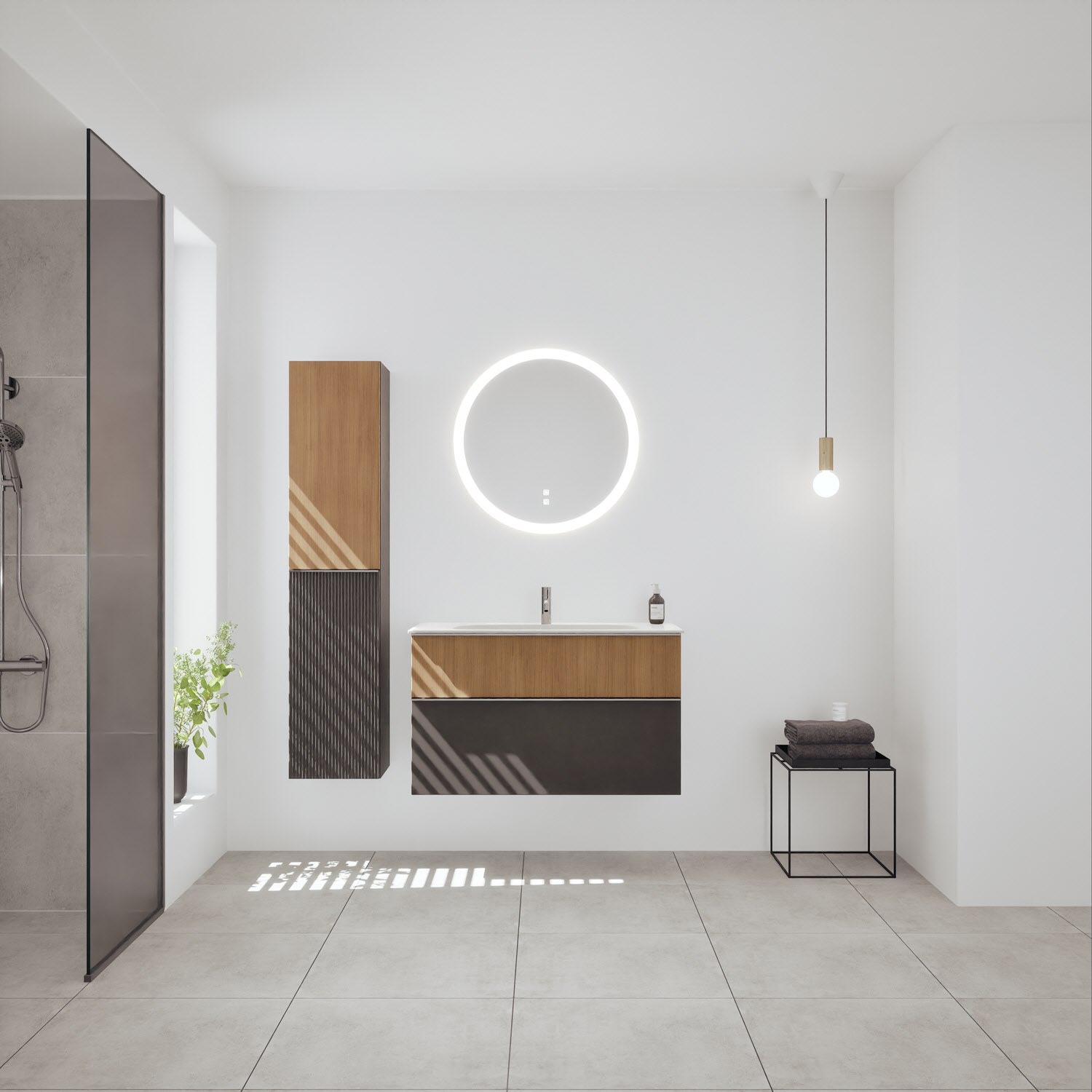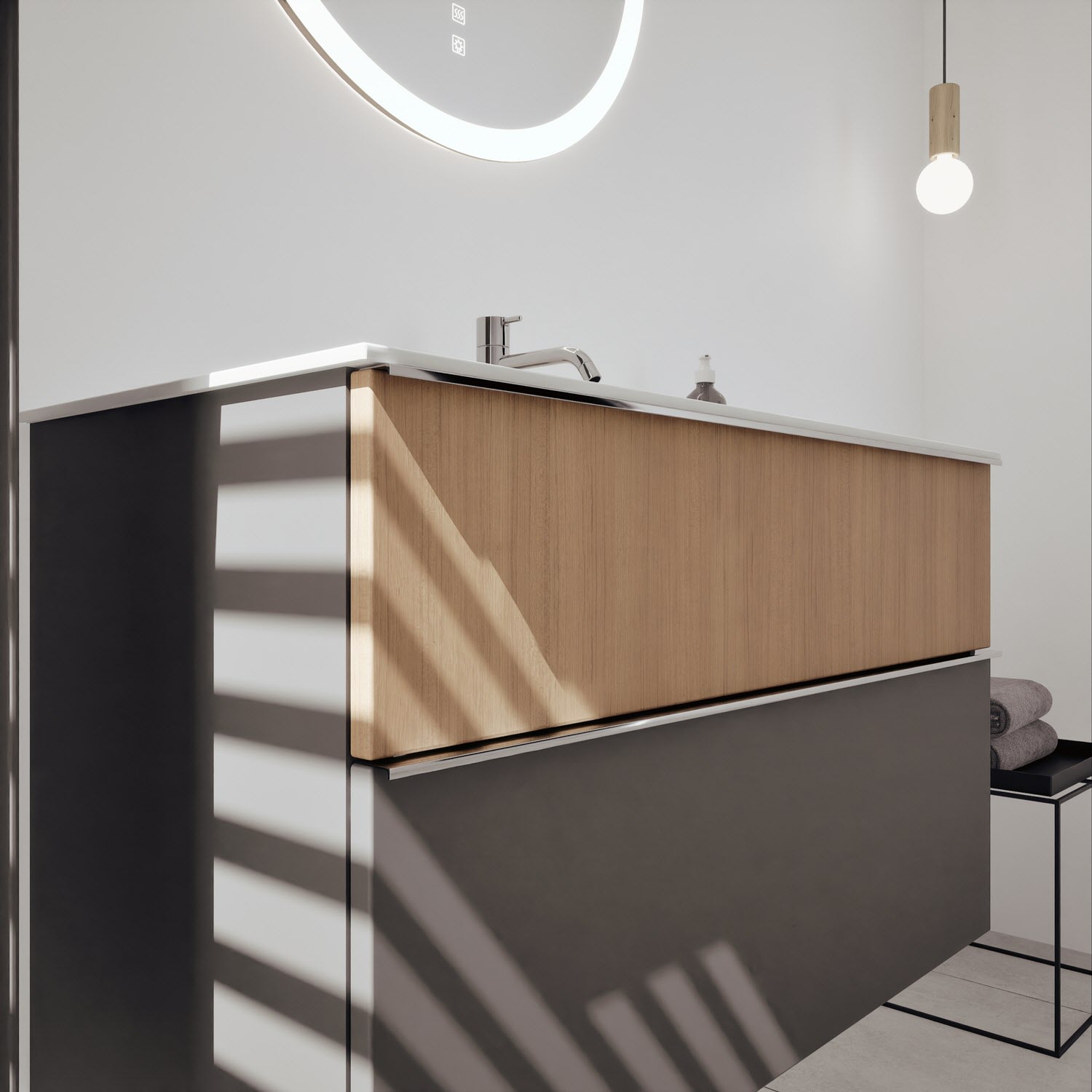 burgbad Fiumo 2.0 Mineralguss-Waschtisch mit Waschtischunterschrank 102 cm, mit Griff G0146