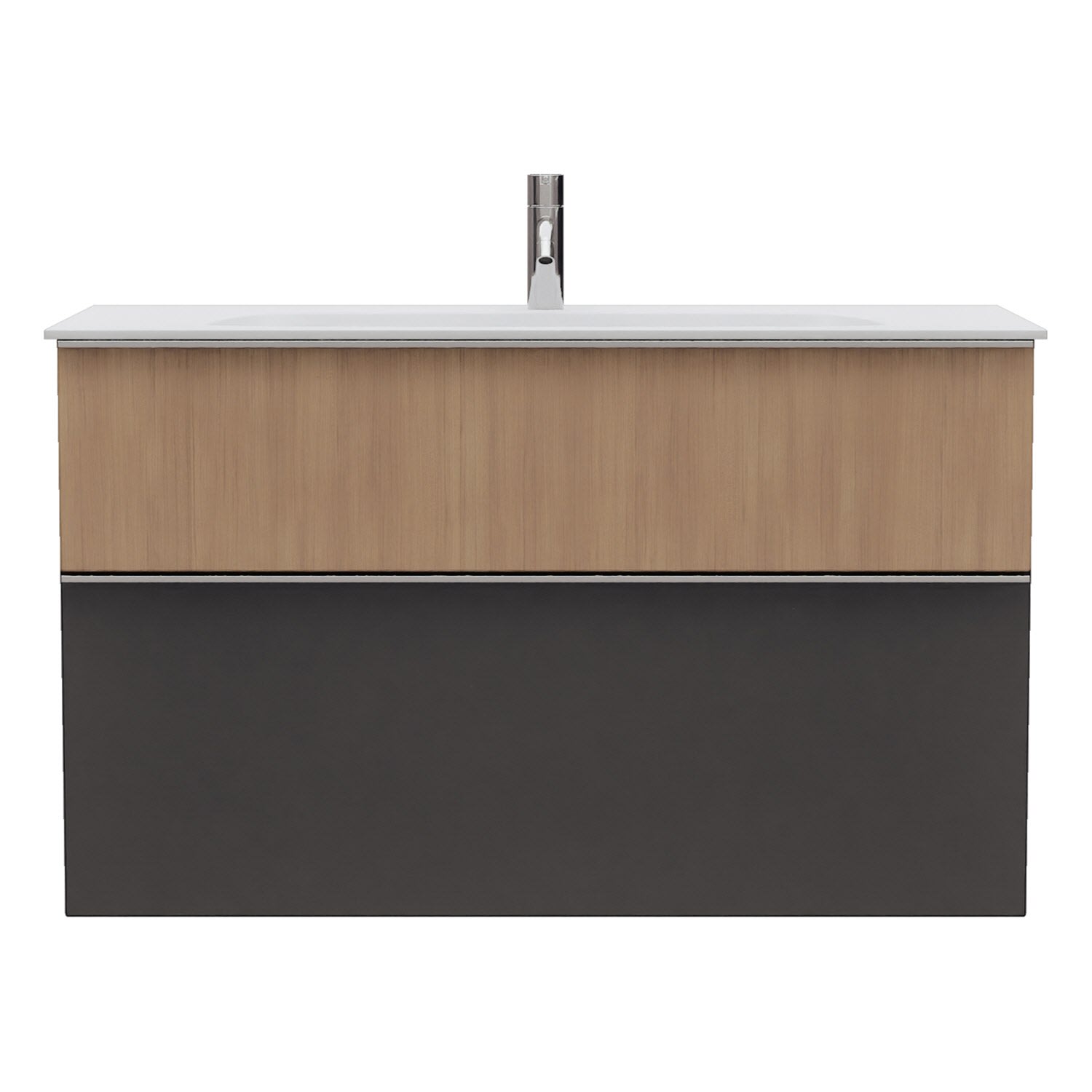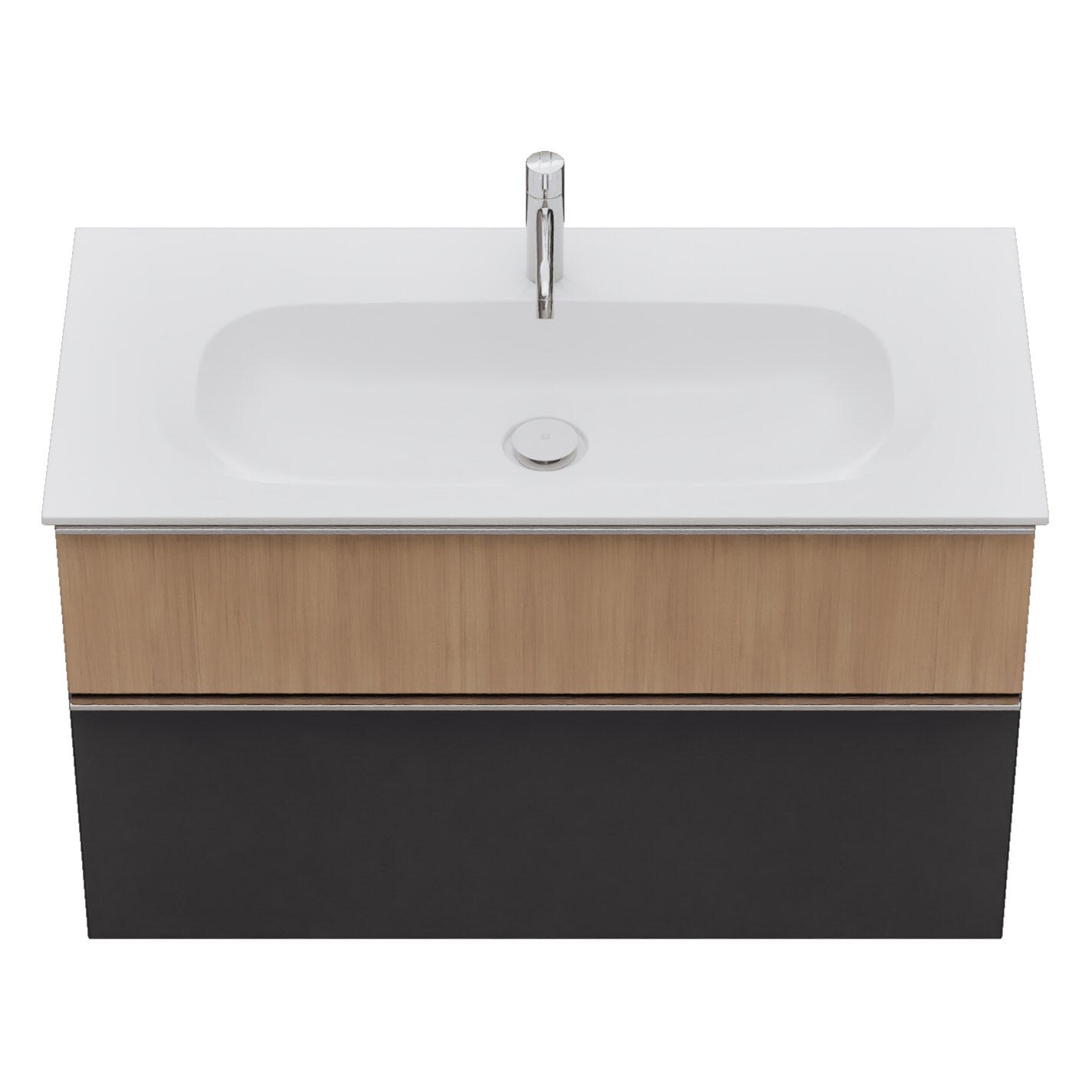 - 1 Schublade oben, 35 cm tief, mit Siphonausschnitt und Inneneinteilung
