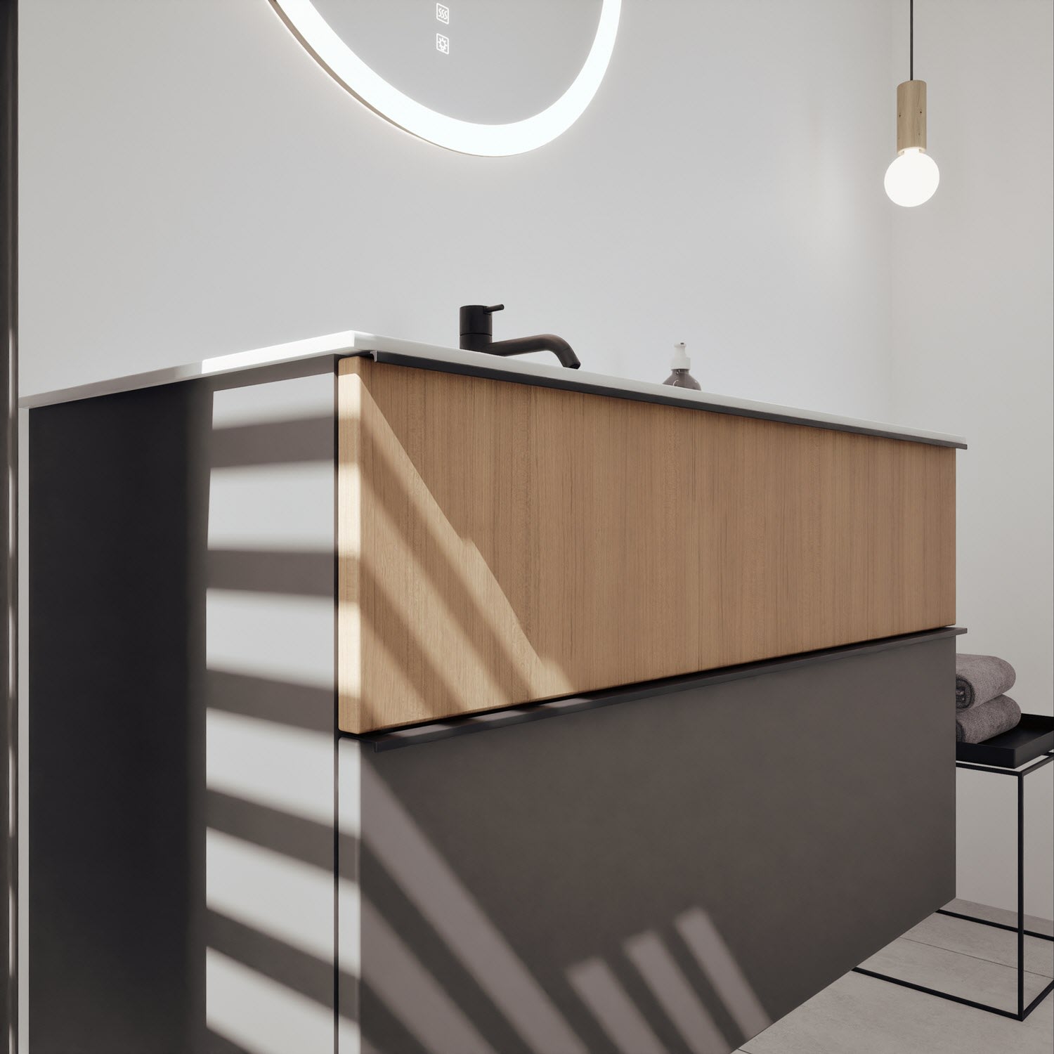 burgbad Fiumo 2.0 Mineralguss-Waschtisch mit Waschtischunterschrank 102 cm, mit Griff G0200