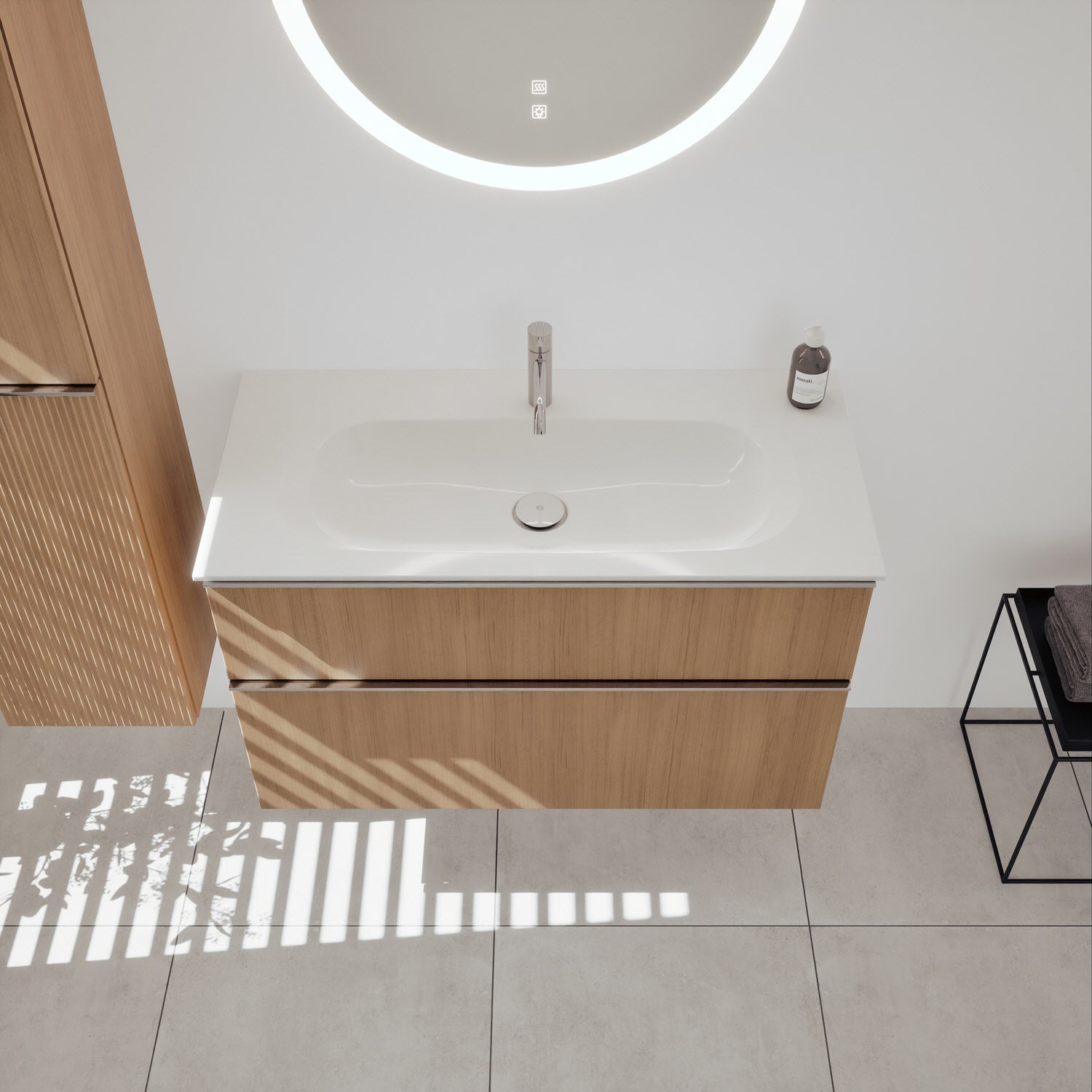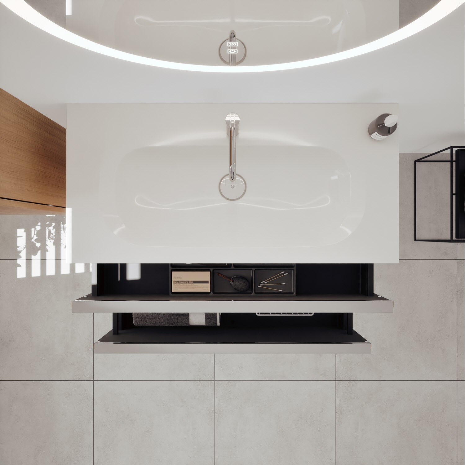 burgbad Fiumo 2.0 Mineralguss-Waschtisch mit Waschtischunterschrank 102 cm, mit Griff G0146
