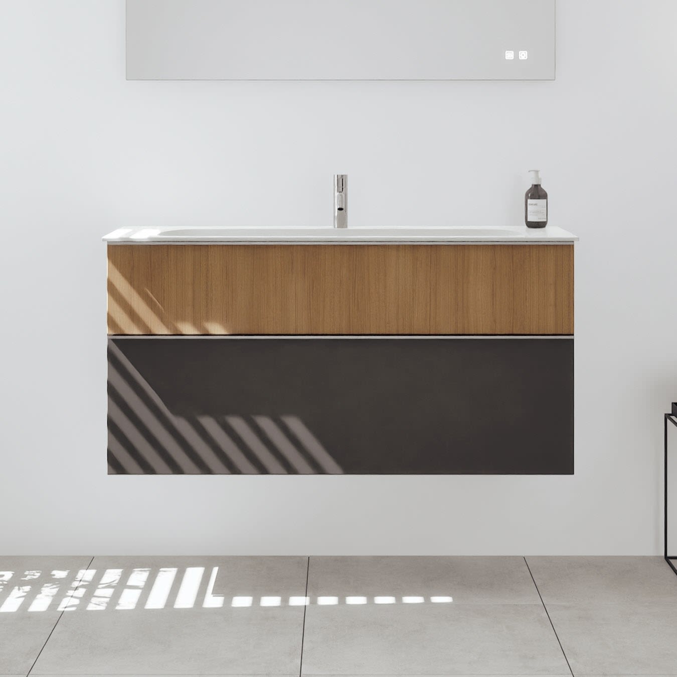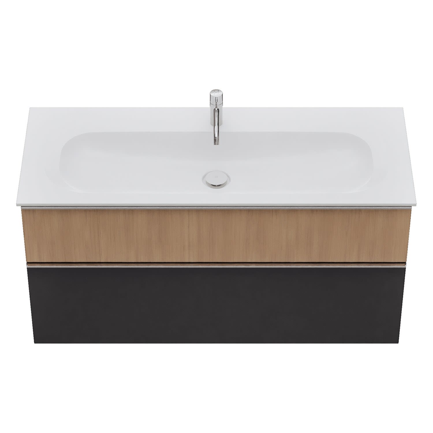 - 1 Schublade oben, 35 cm tief, mit Siphonausschnitt und Inneneinteilung