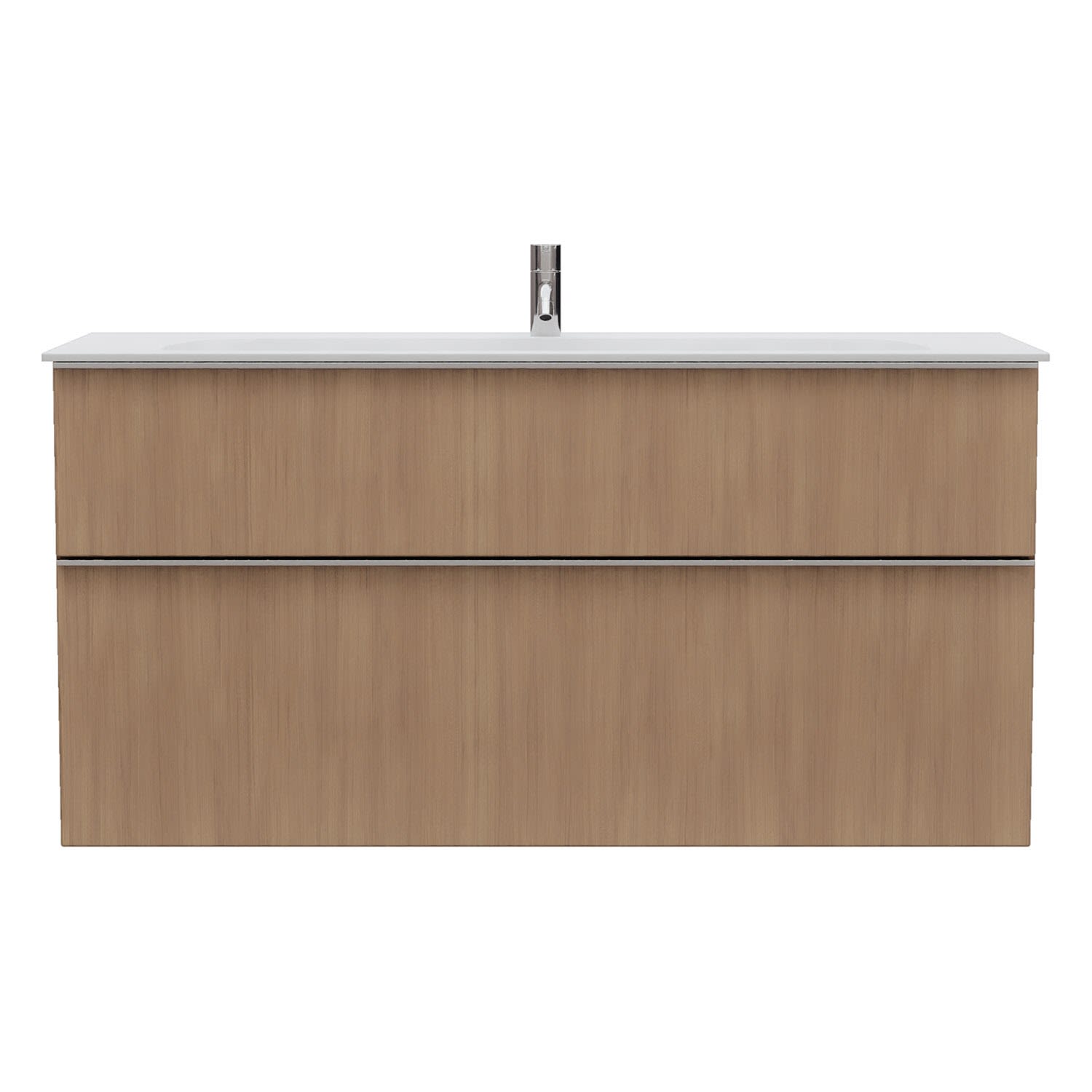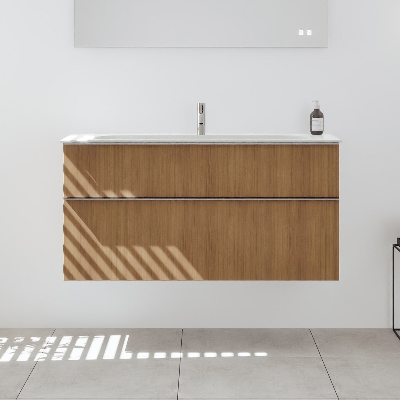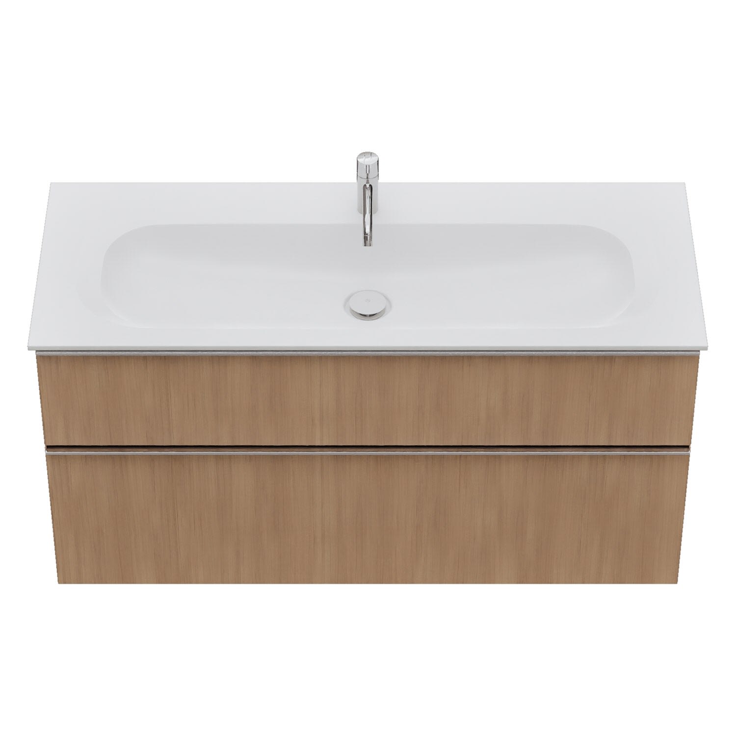 progettobagno Evo Terra Unterschrank 120 cm mit Platte in Holzdekor, Hahnlochbohrung und ELY 60 Einbauwaschtisch