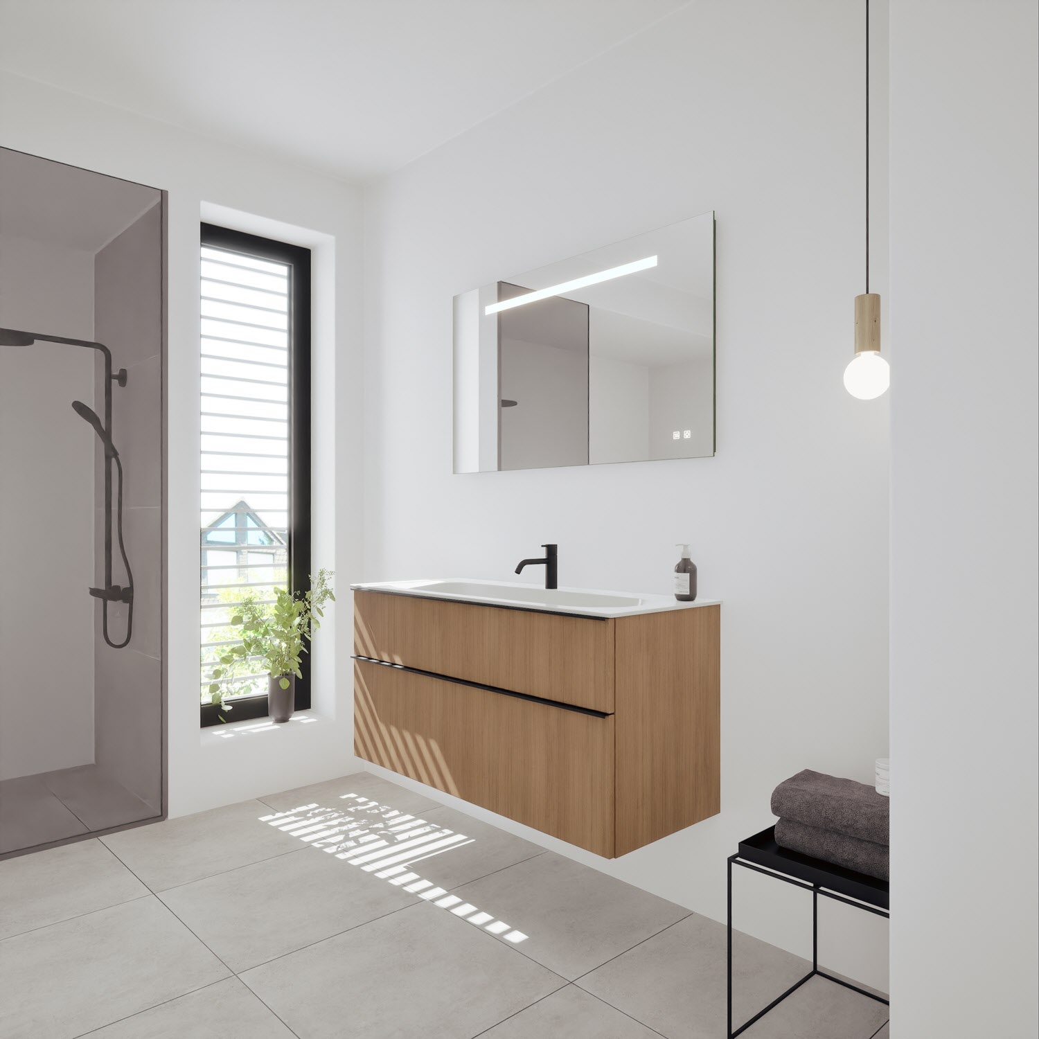 burgbad Fiumo 2.0 Badmöbelset 62 cm mit Waschtisch mit Unterschrank mit Griff G0146 und Spiegelschrank