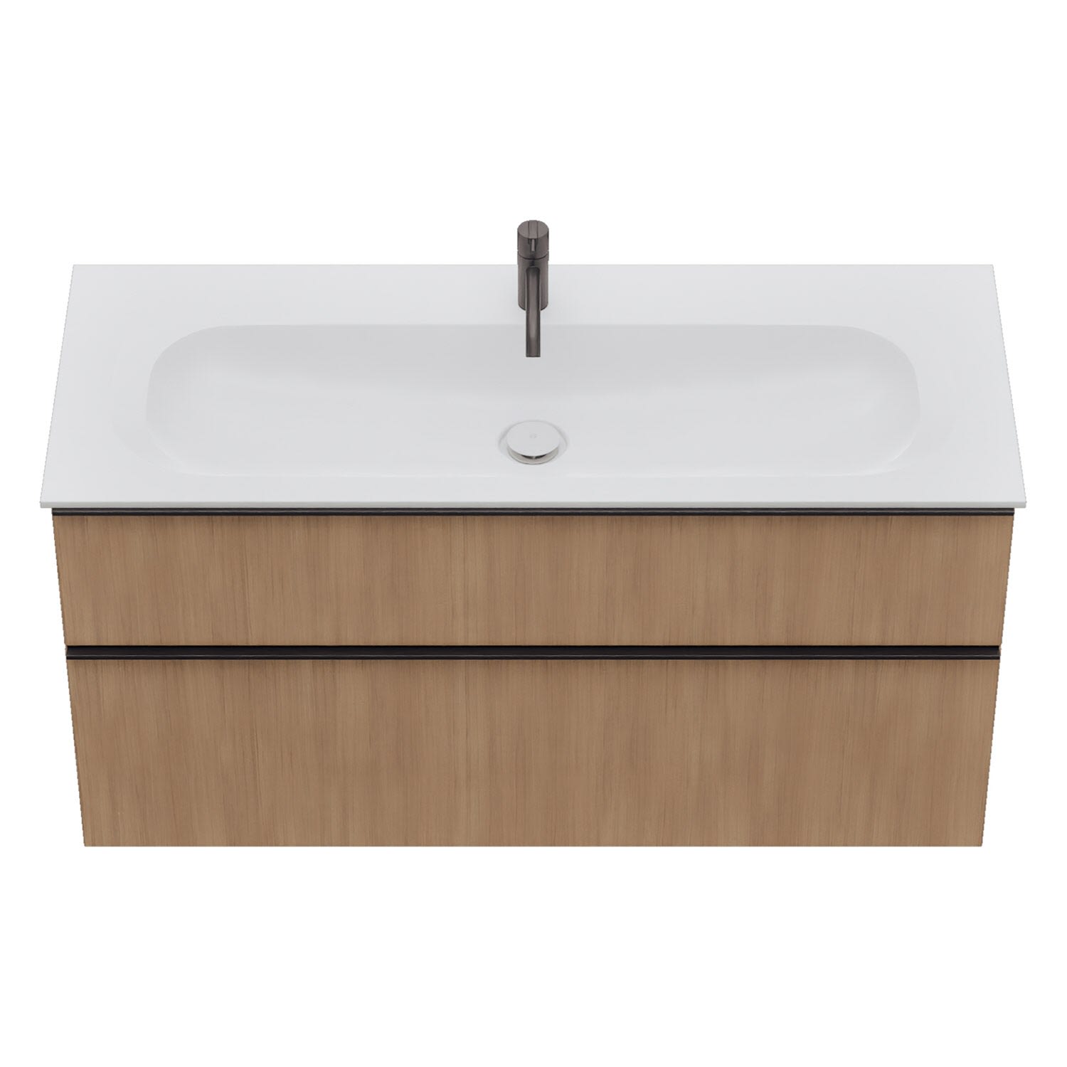 - 1 Schublade oben, 35 cm tief, mit Siphonausschnitt und Inneneinteilung
