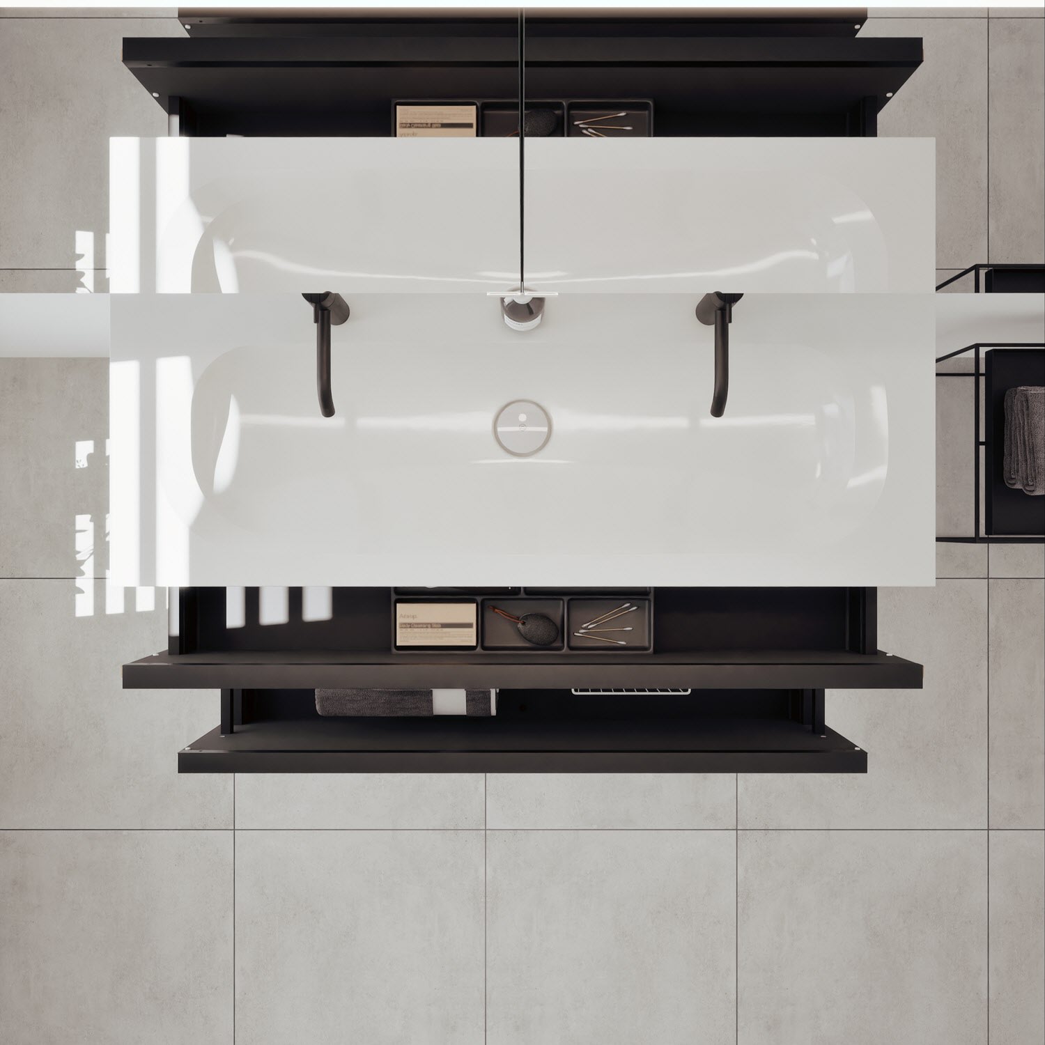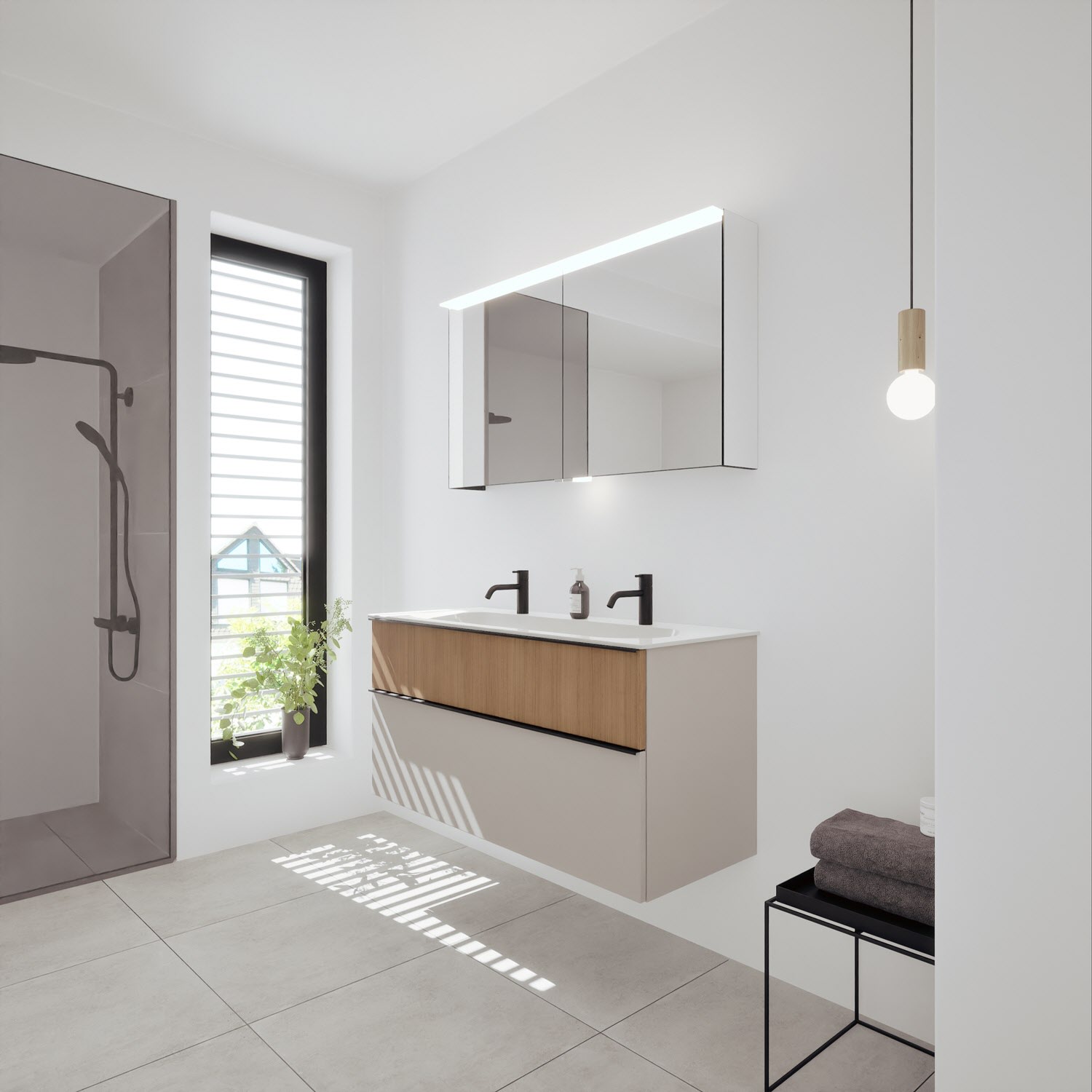 burgbad Fiumo 2.0 Spiegelschrank 120,6 cm mit LED-Aufsatzleuchte und Waschplatzbeleuchtung, 2 Spiegeltüren