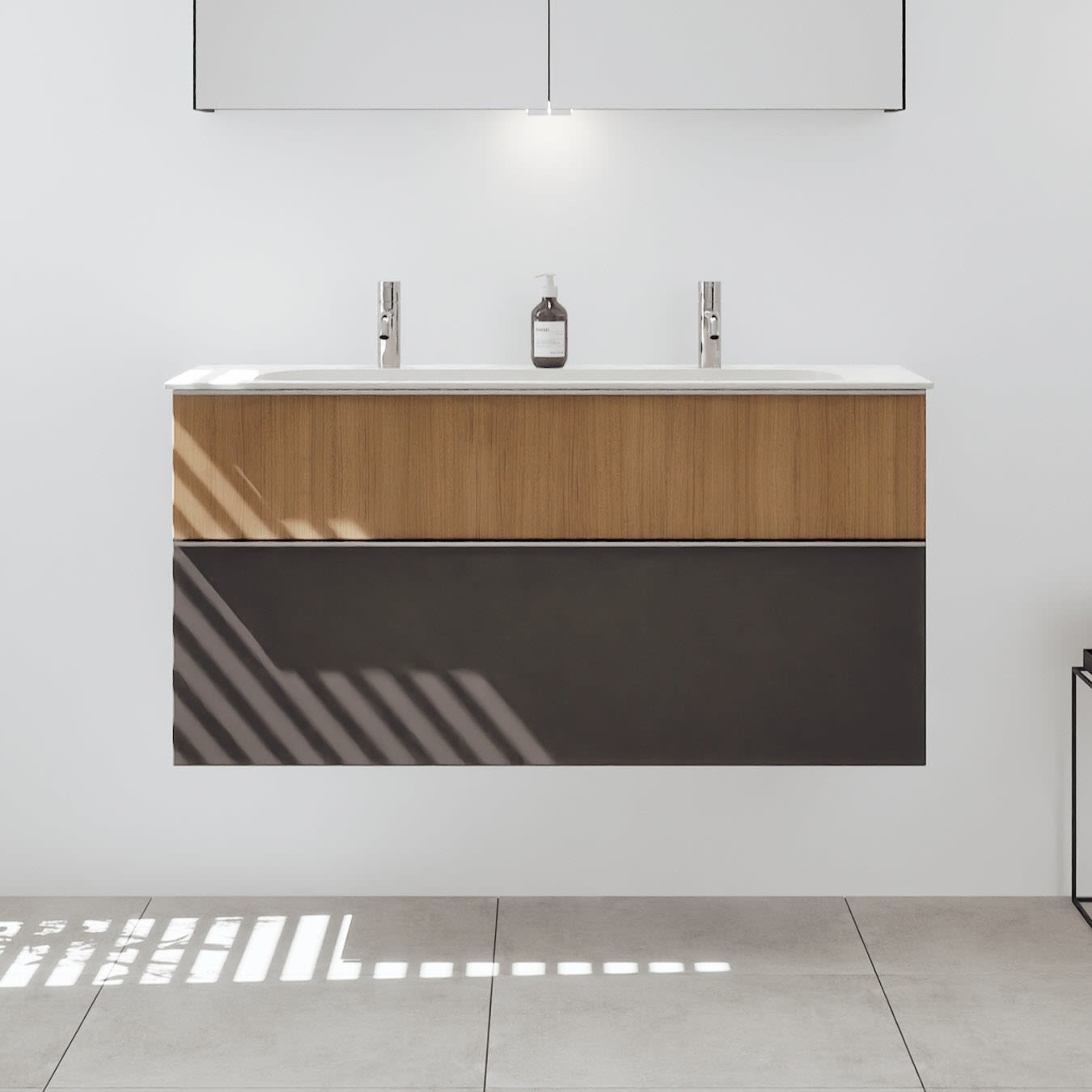 burgbad Fiumo 2.0 Spiegelschrank 120,6 cm mit LED-Aufsatzleuchte und Waschplatzbeleuchtung, 2 Spiegeltüren