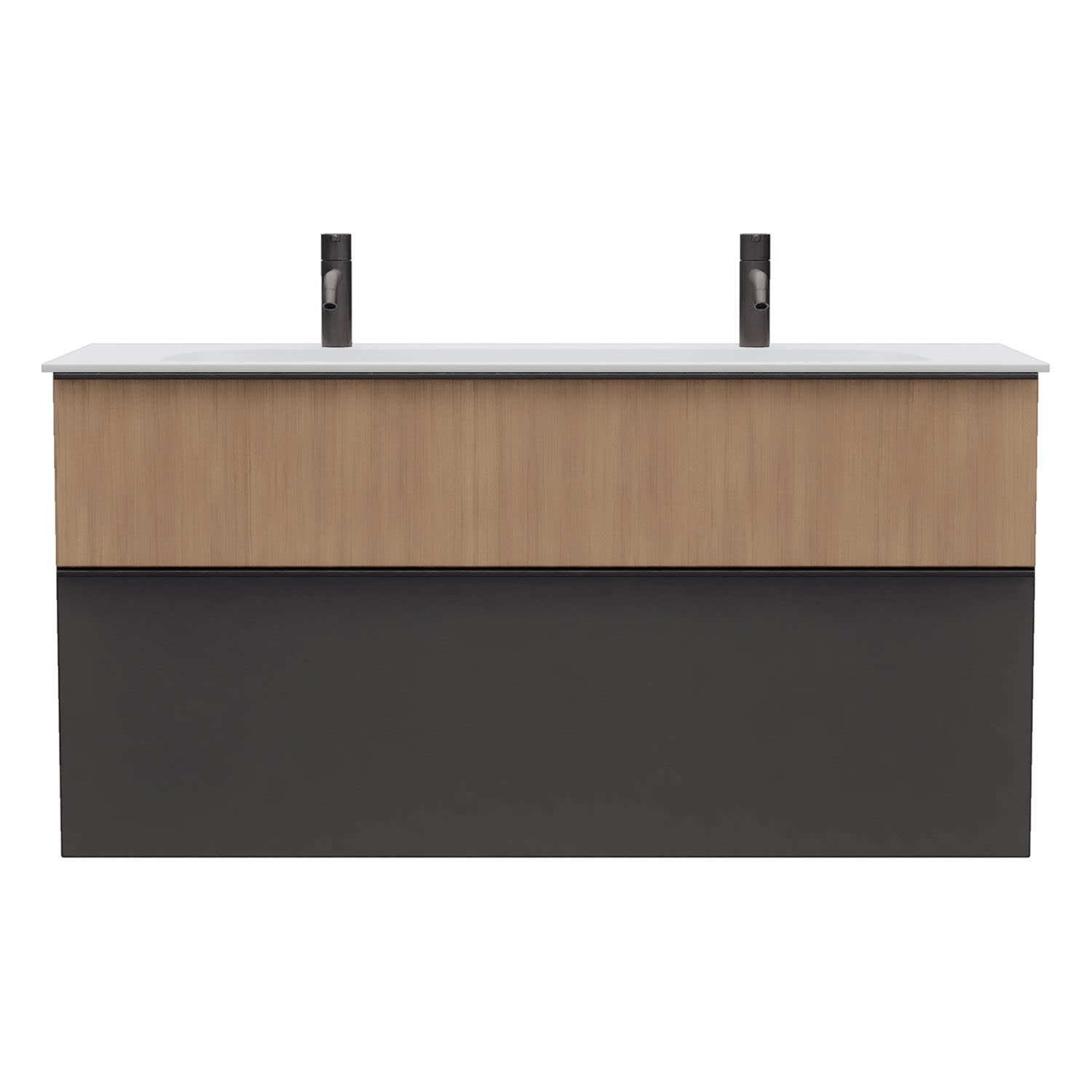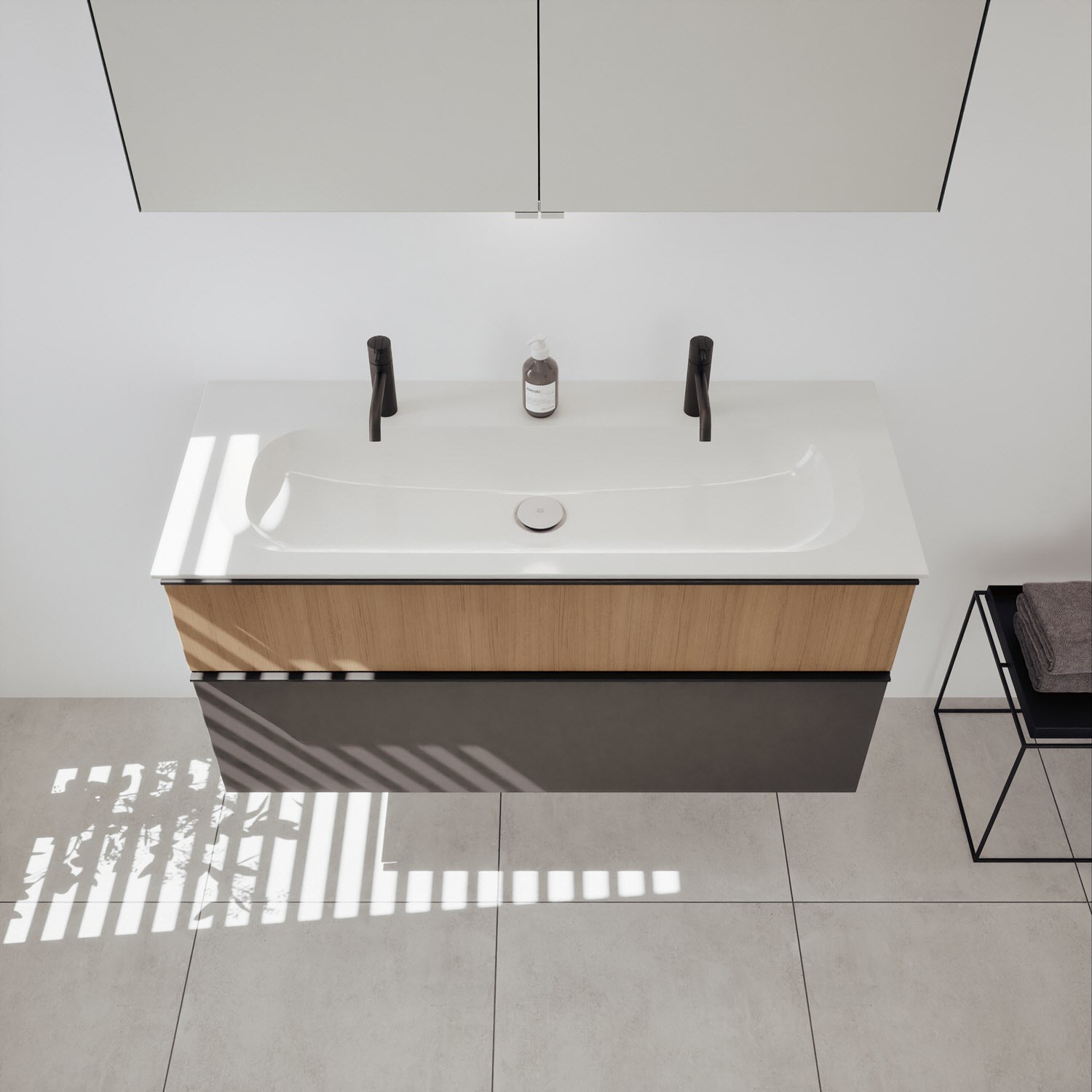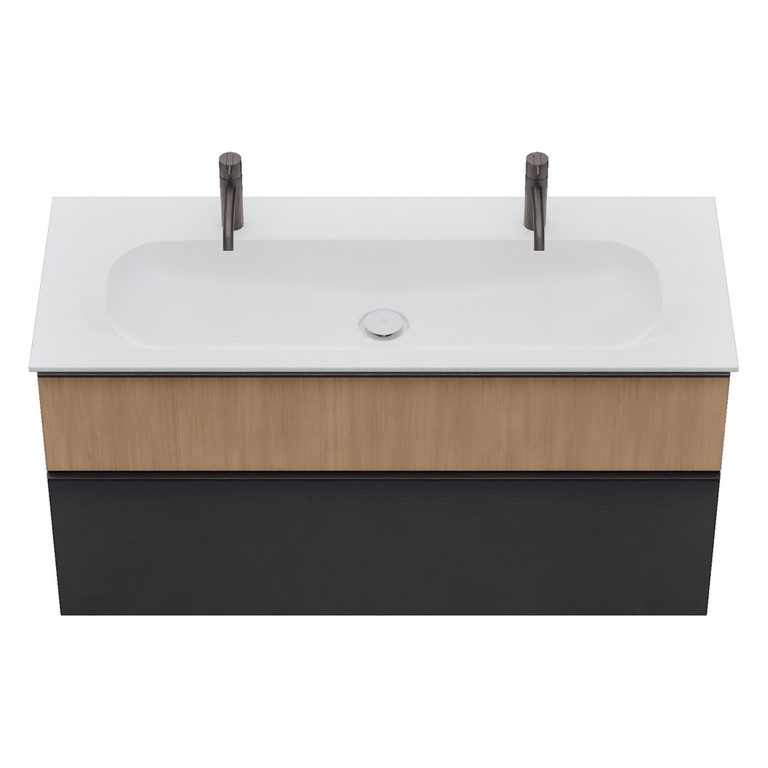 - 1 Schublade oben, 35 cm tief, mit Siphonausschnitt und Inneneinteilung
