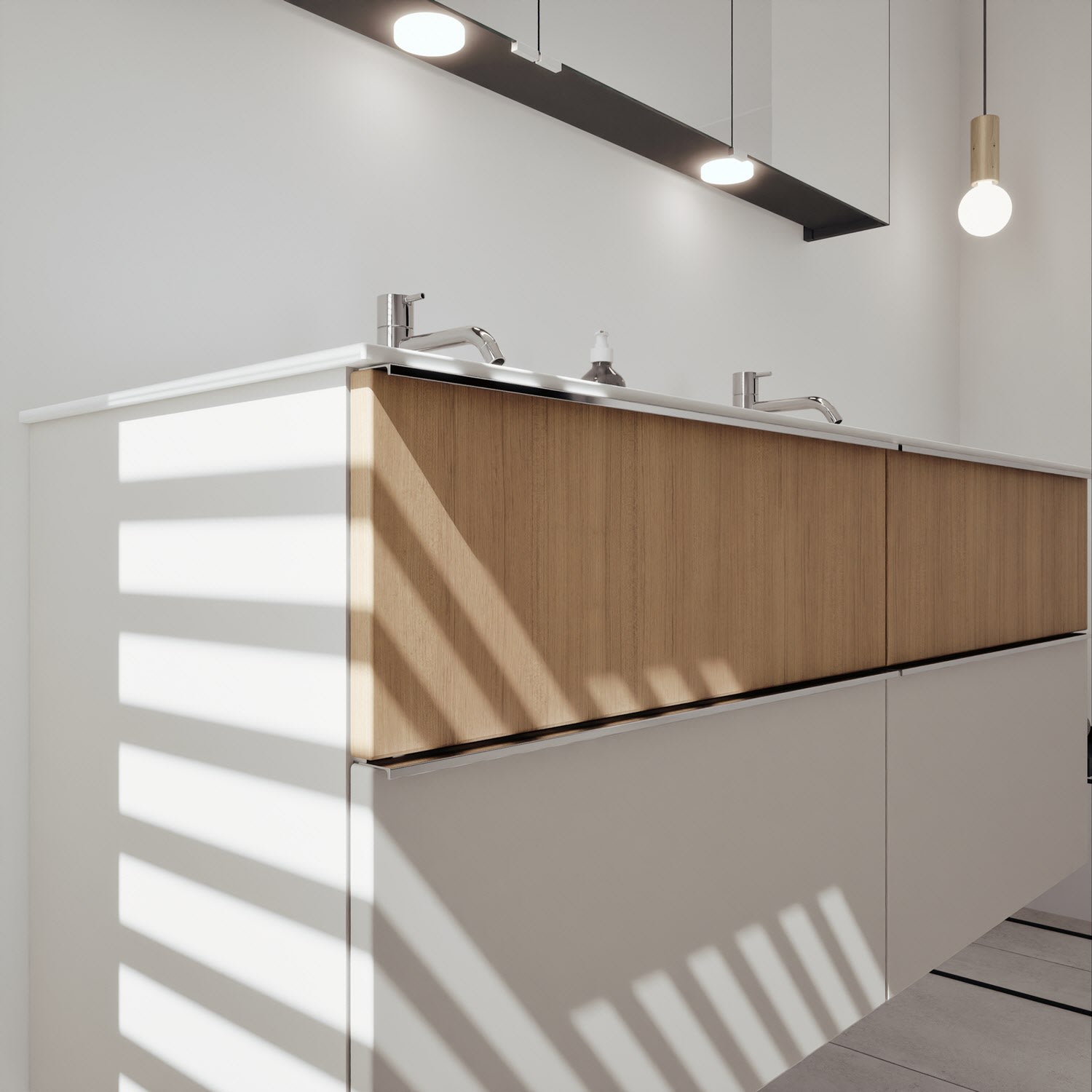 burgbad Fiumo 2.0 Mineralguss-Waschtisch mit Waschtischunterschrank 142 cm, mit Griff G0146
