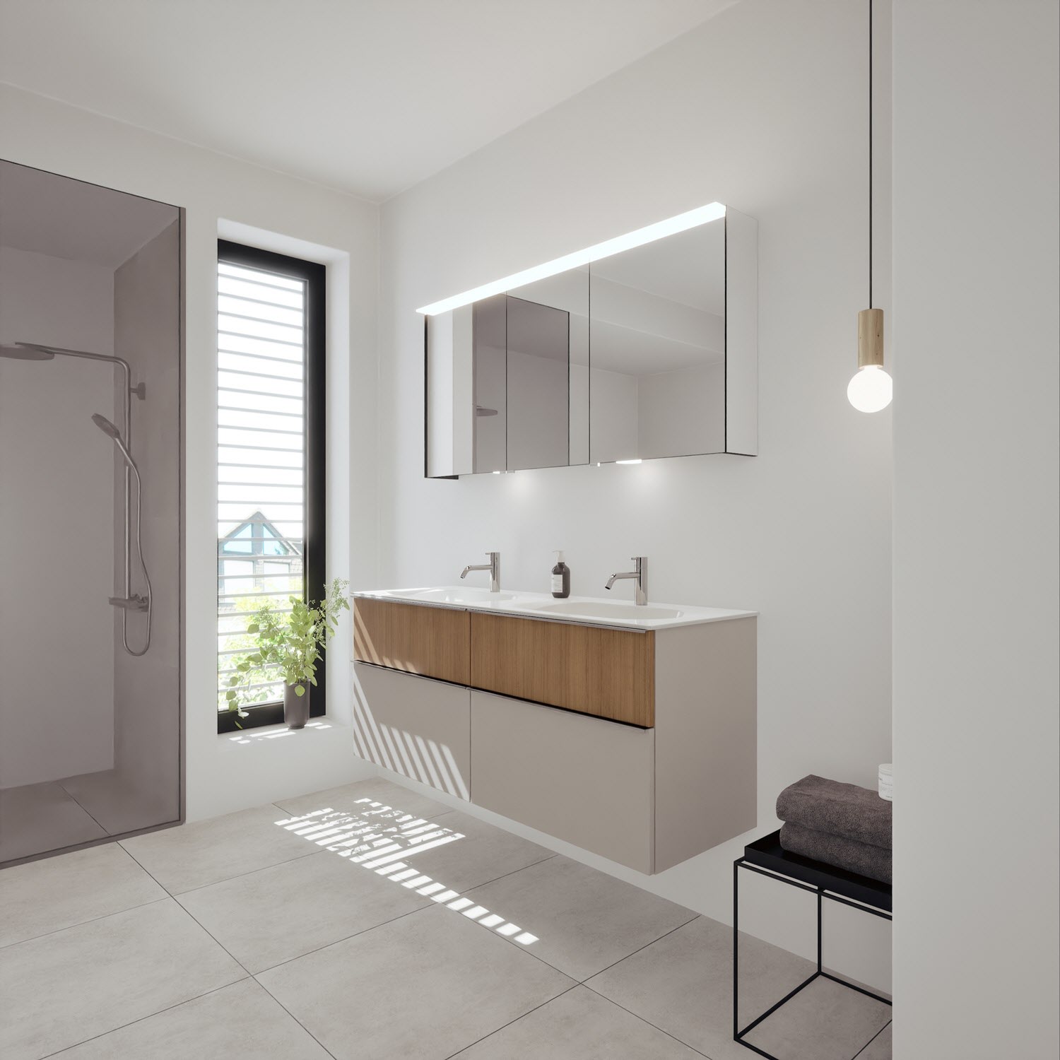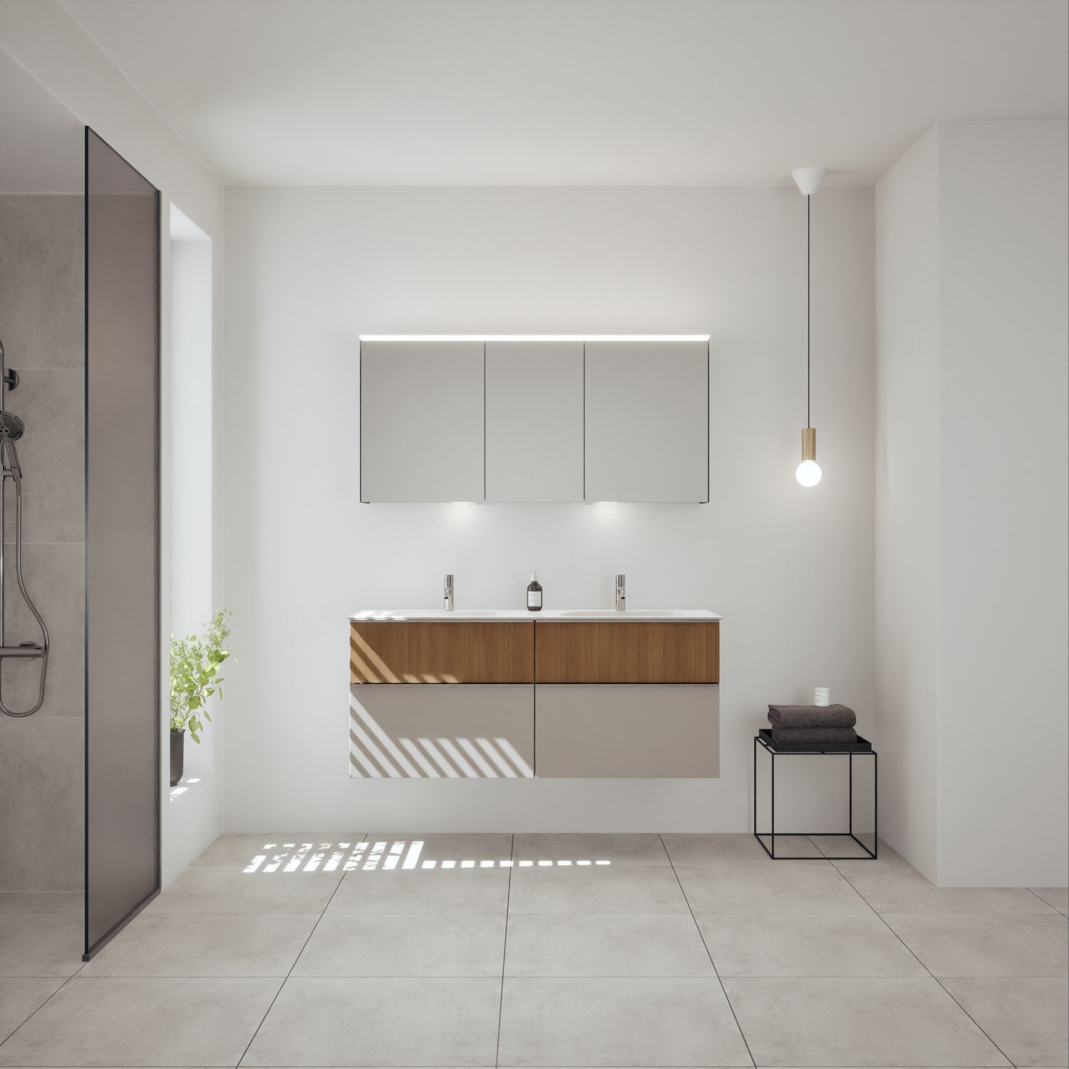 burgbad Fiumo 2.0 Spiegelschrank 140,6 cm mit LED-Aufsatzleuchte und Waschplatzbeleuchtung, 3 Spiegeltüren