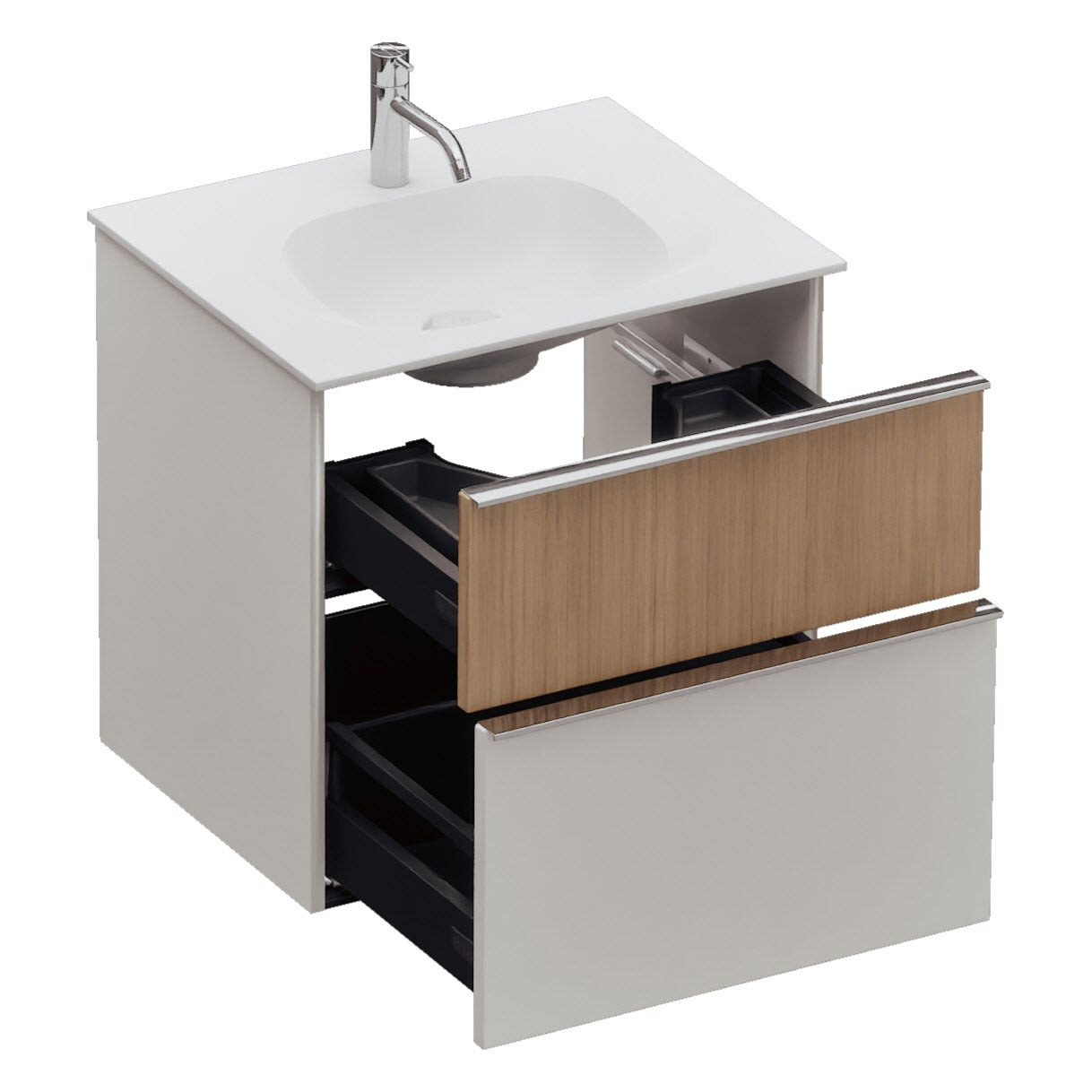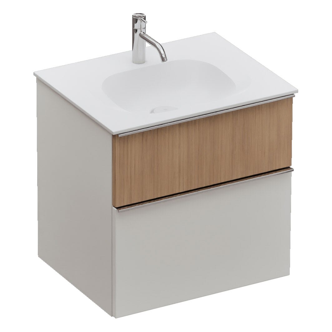 burgbad Fiumo 2.0 Mineralguss-Waschtisch mit Waschtischunterschrank 62 cm, mit Griff G0146