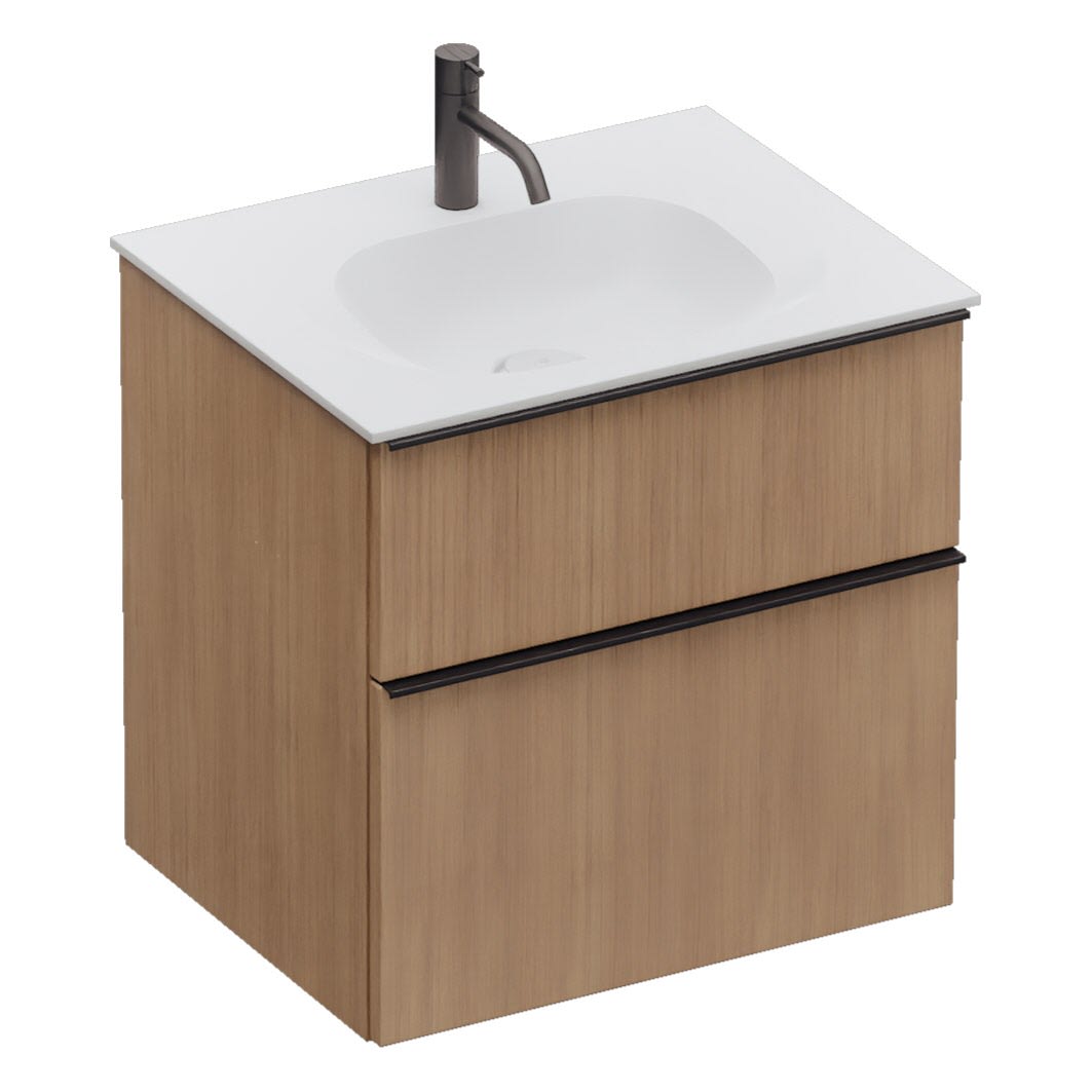 burgbad Fiumo 2.0 Mineralguss-Waschtisch mit Waschtischunterschrank 62 cm, mit Griff G0200