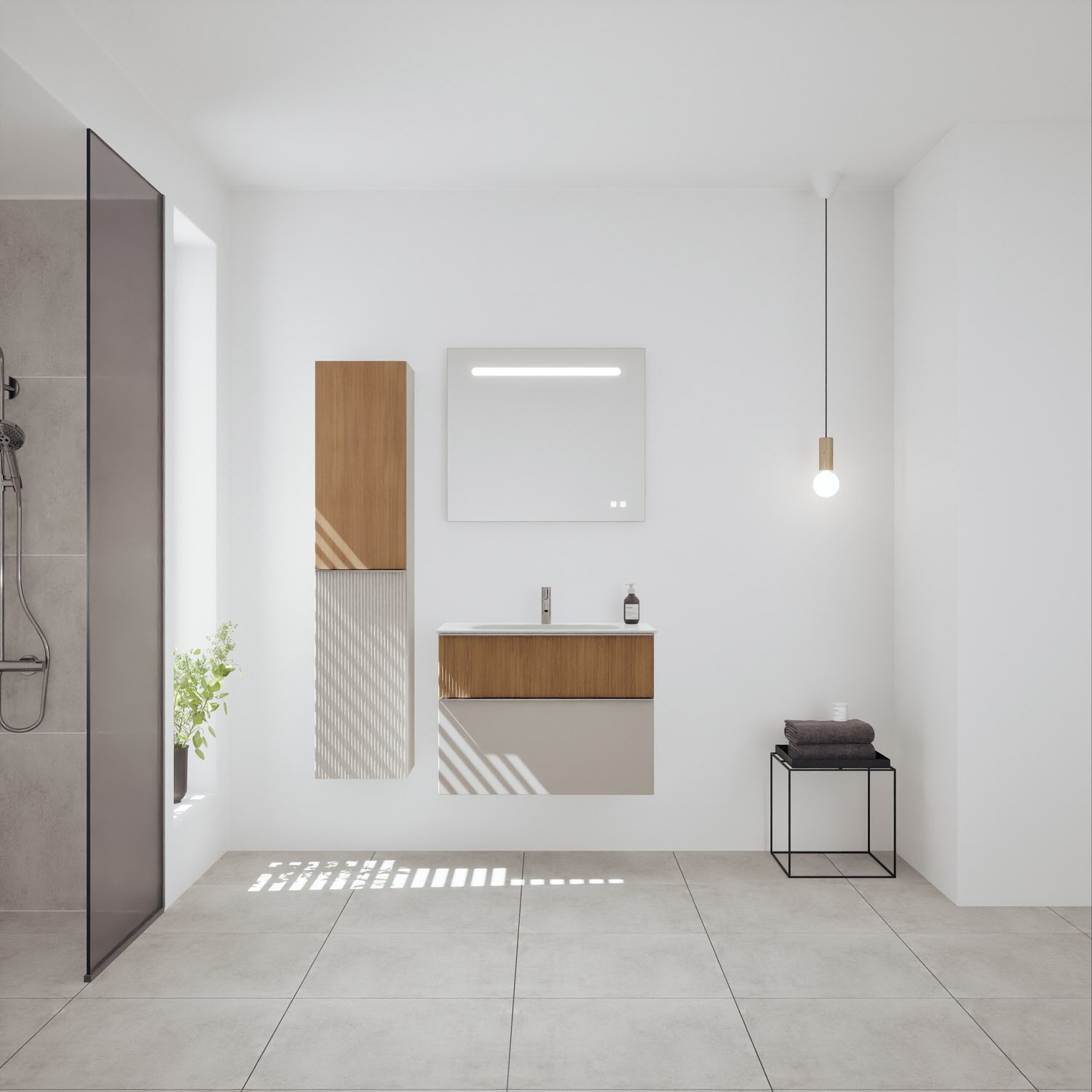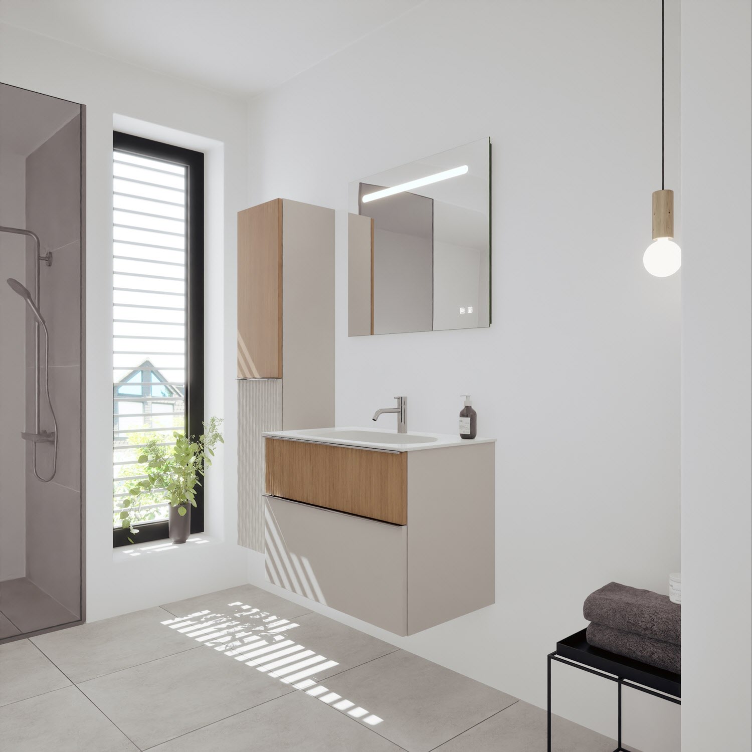 burgbad Fiumo 2.0 Mineralguss-Waschtisch mit Waschtischunterschrank 82 cm, mit Griff G0146