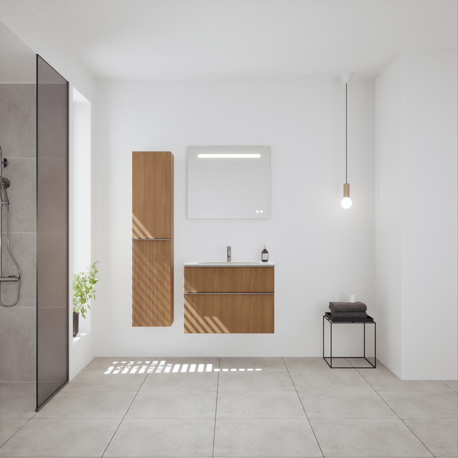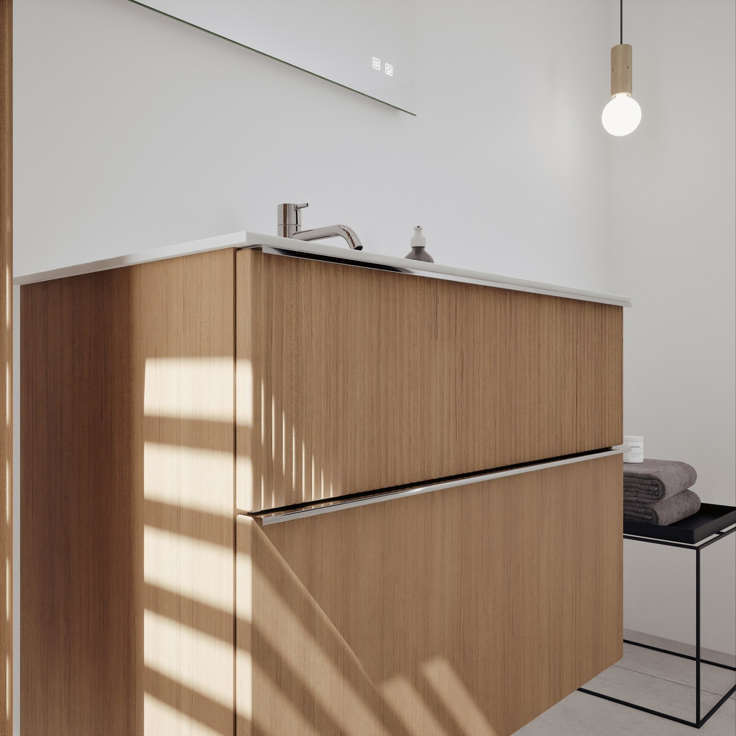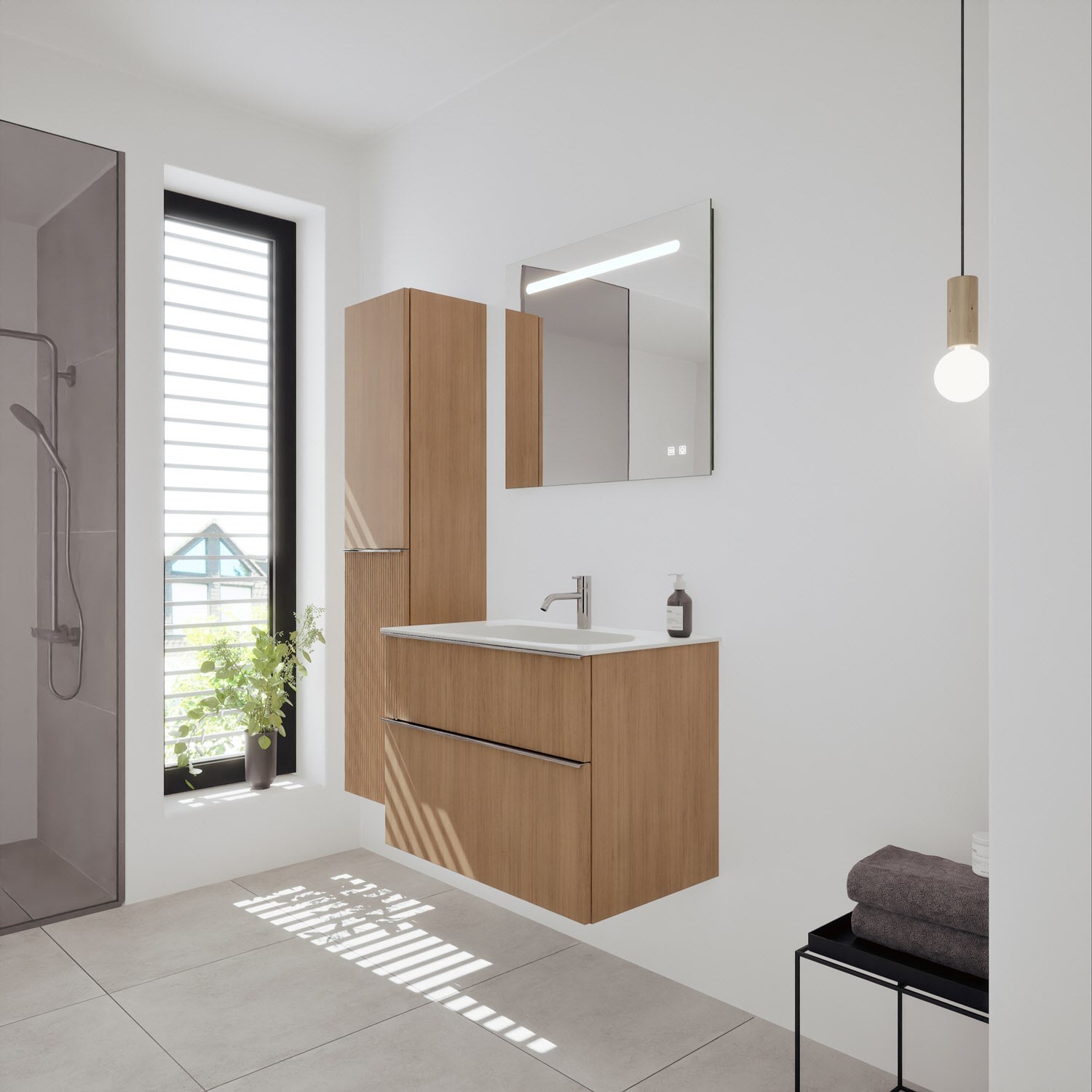 burgbad Fiumo 2.0 Mineralguss-Waschtisch mit Waschtischunterschrank 82 cm, mit Griff G0146