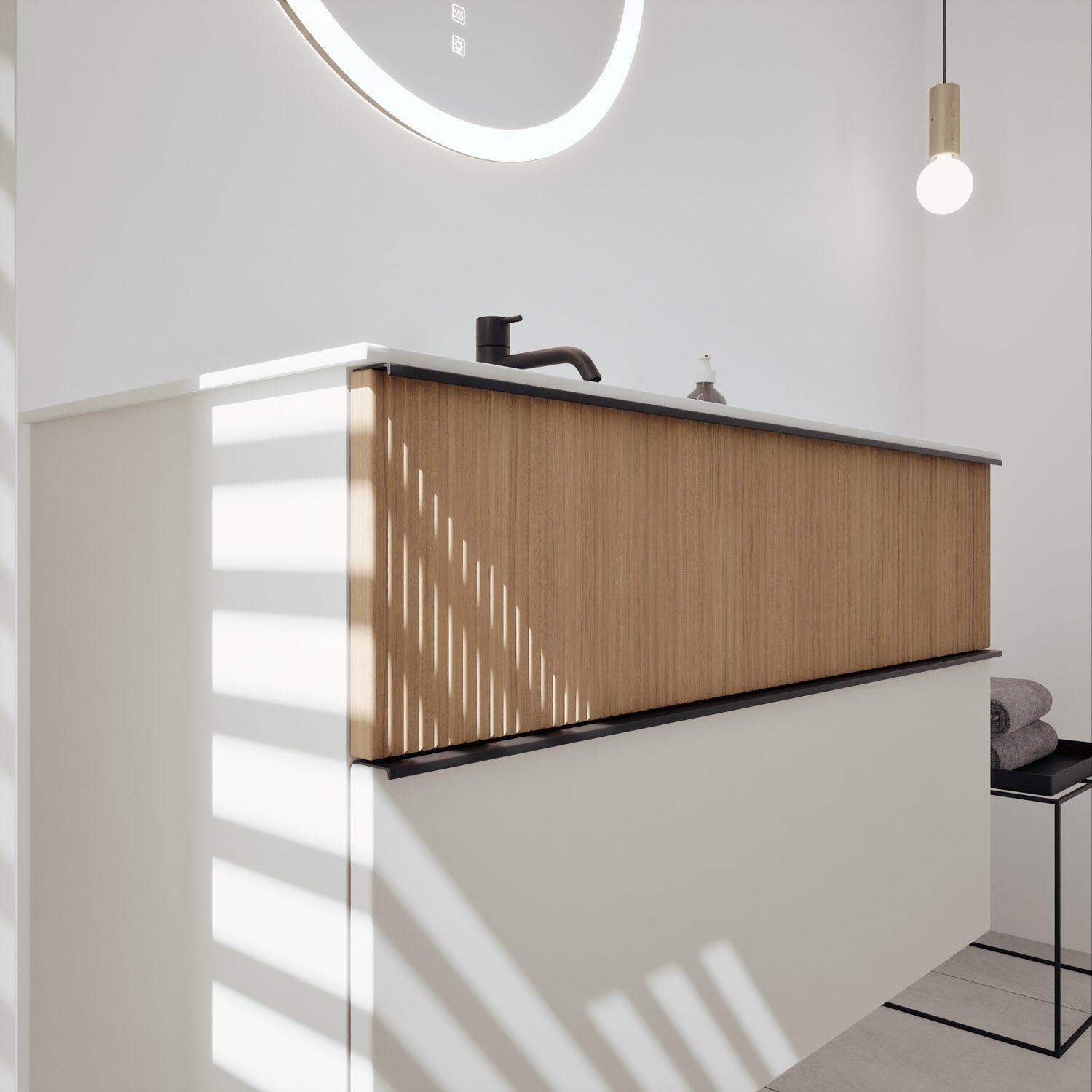 burgbad Fiumo 2.0 Mineralguss-Waschtisch mit Waschtischunterschrank 102 cm, mit Griff G0200