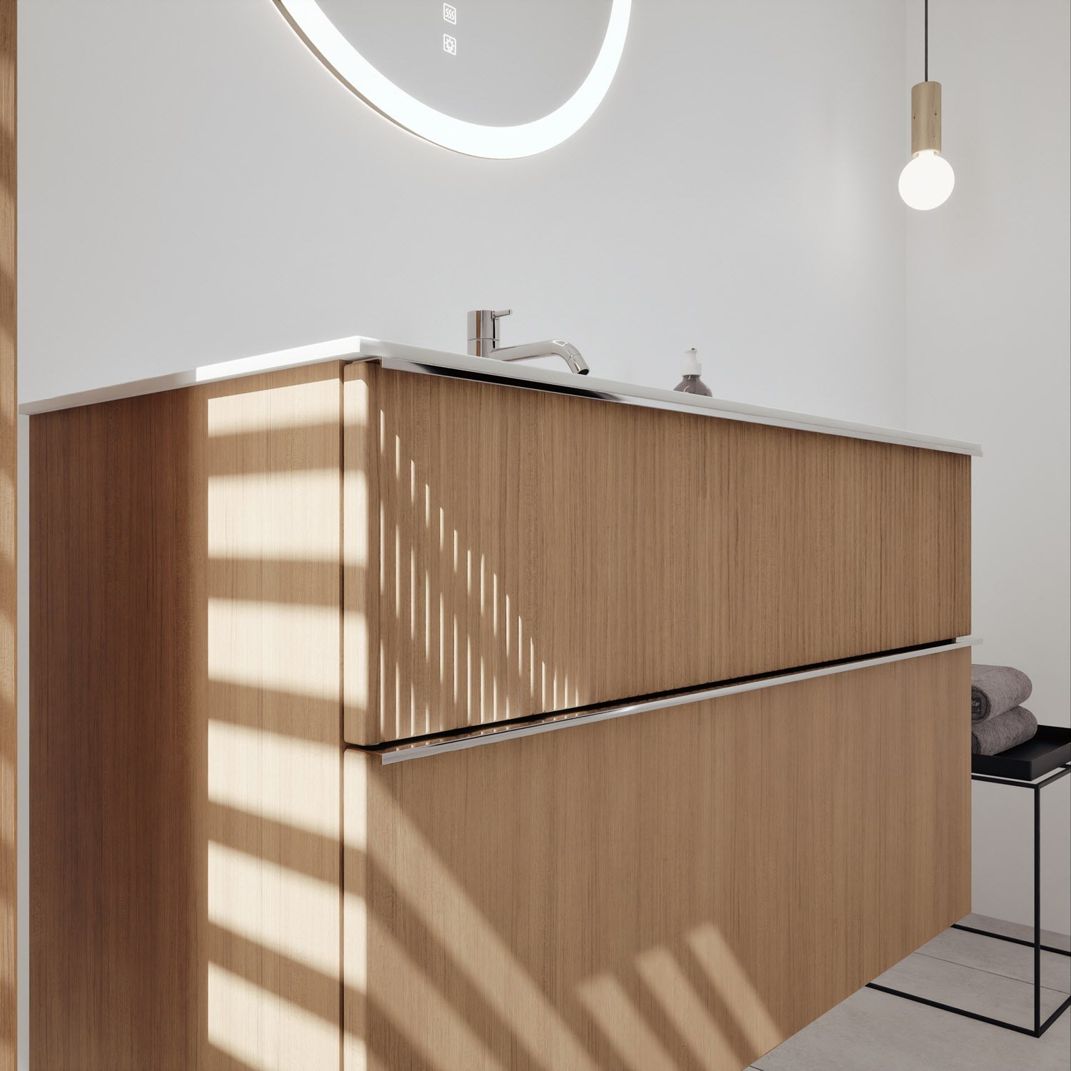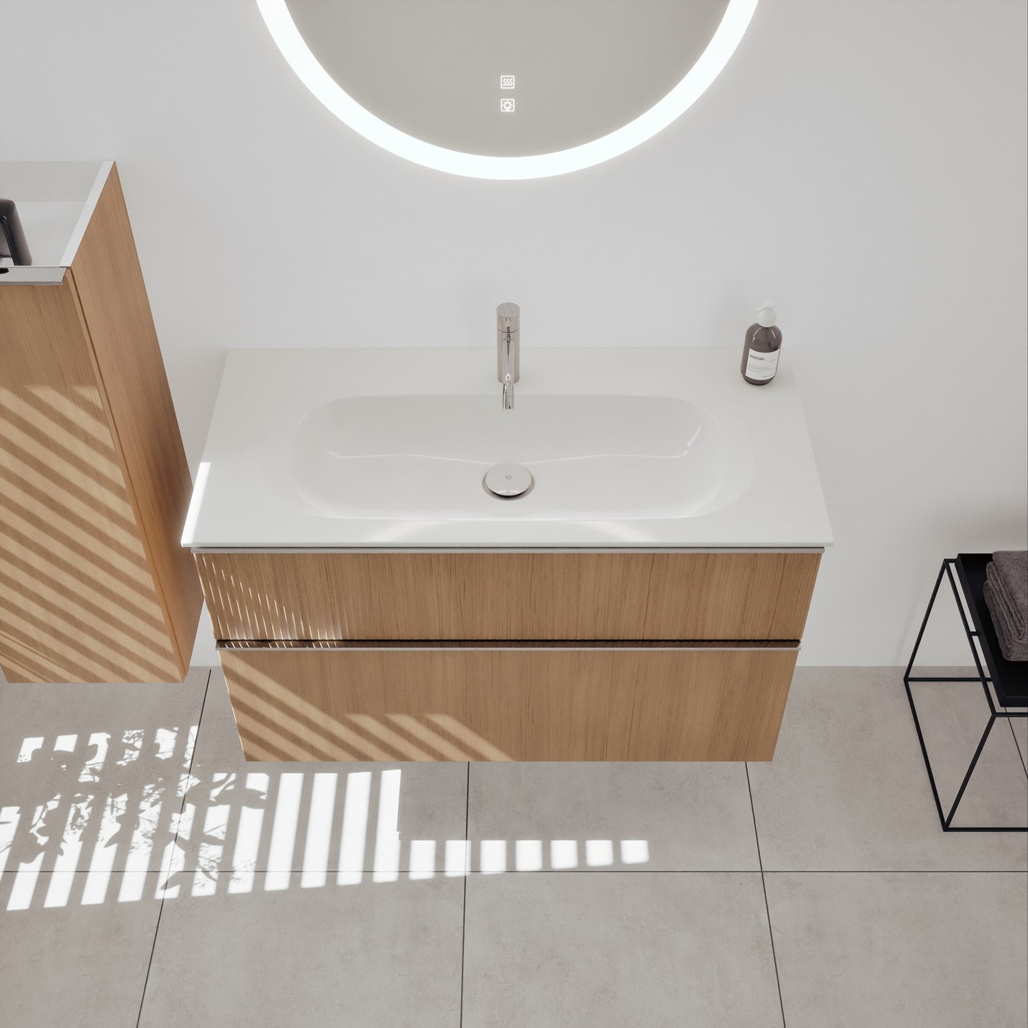 burgbad Fiumo 2.0 Mineralguss-Waschtisch mit Waschtischunterschrank 102 cm, mit Griff G0146
