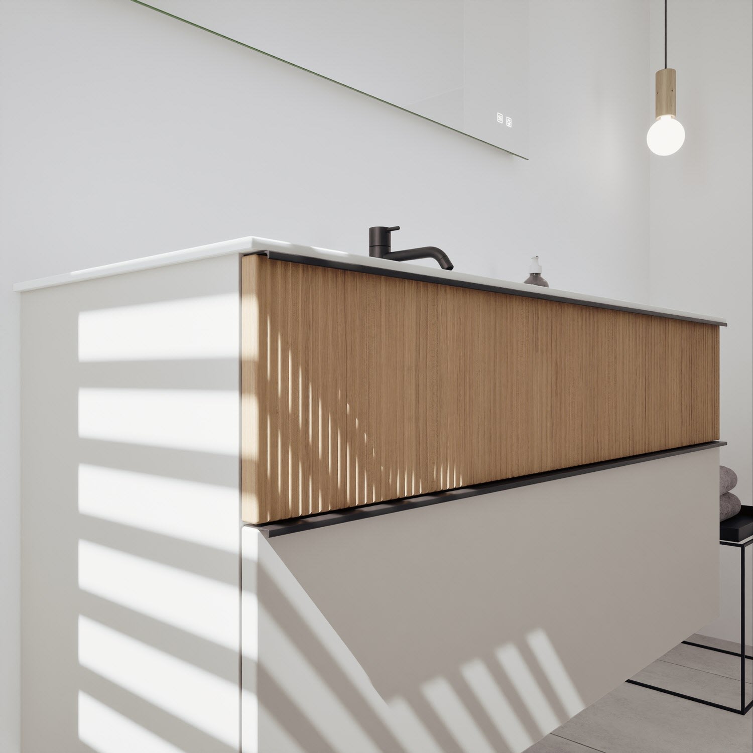 burgbad Fiumo 2.0 Mineralguss-Waschtisch mit Waschtischunterschrank 122 cm, mit Griff G0200