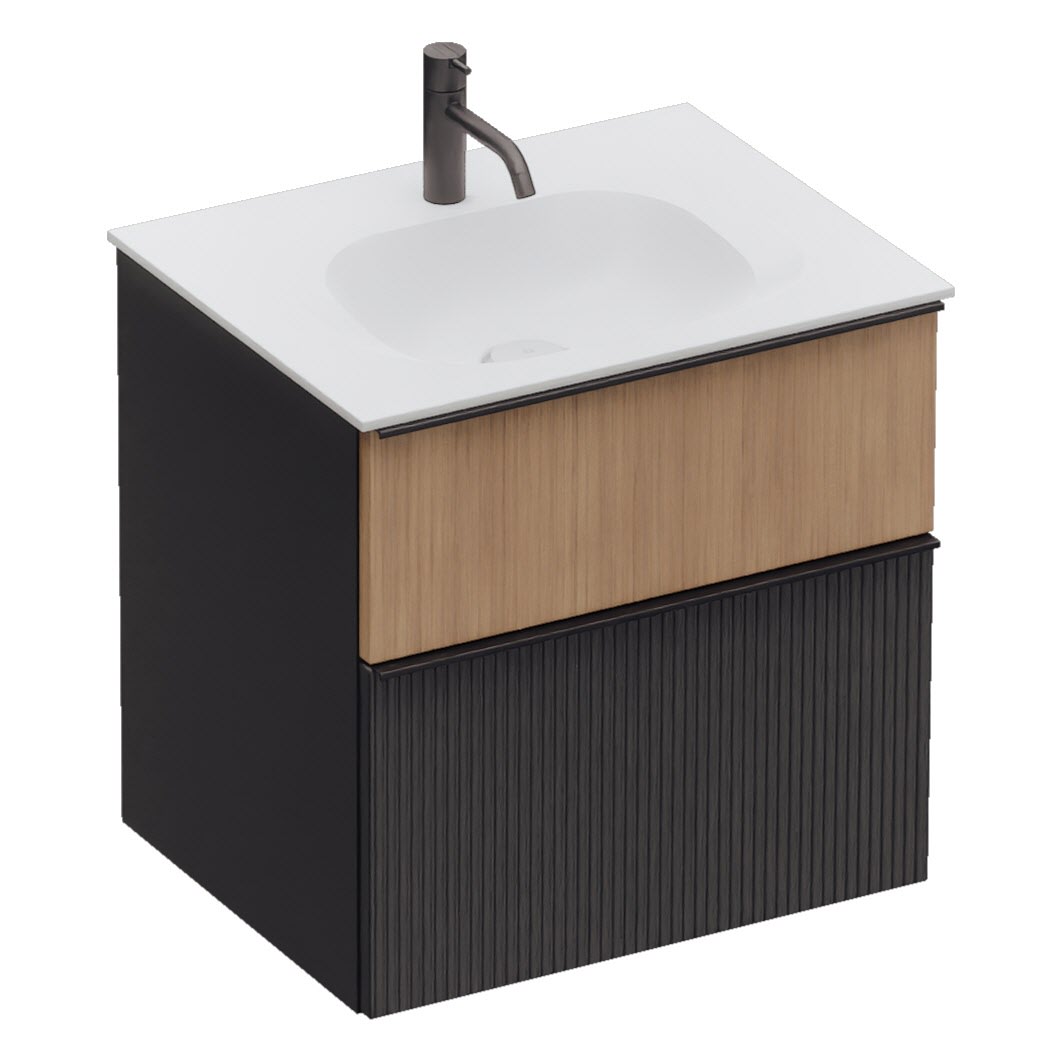 burgbad Fiumo 2.0 Mineralguss-Waschtisch mit Waschtischunterschrank 62 cm, mit Griff G0200