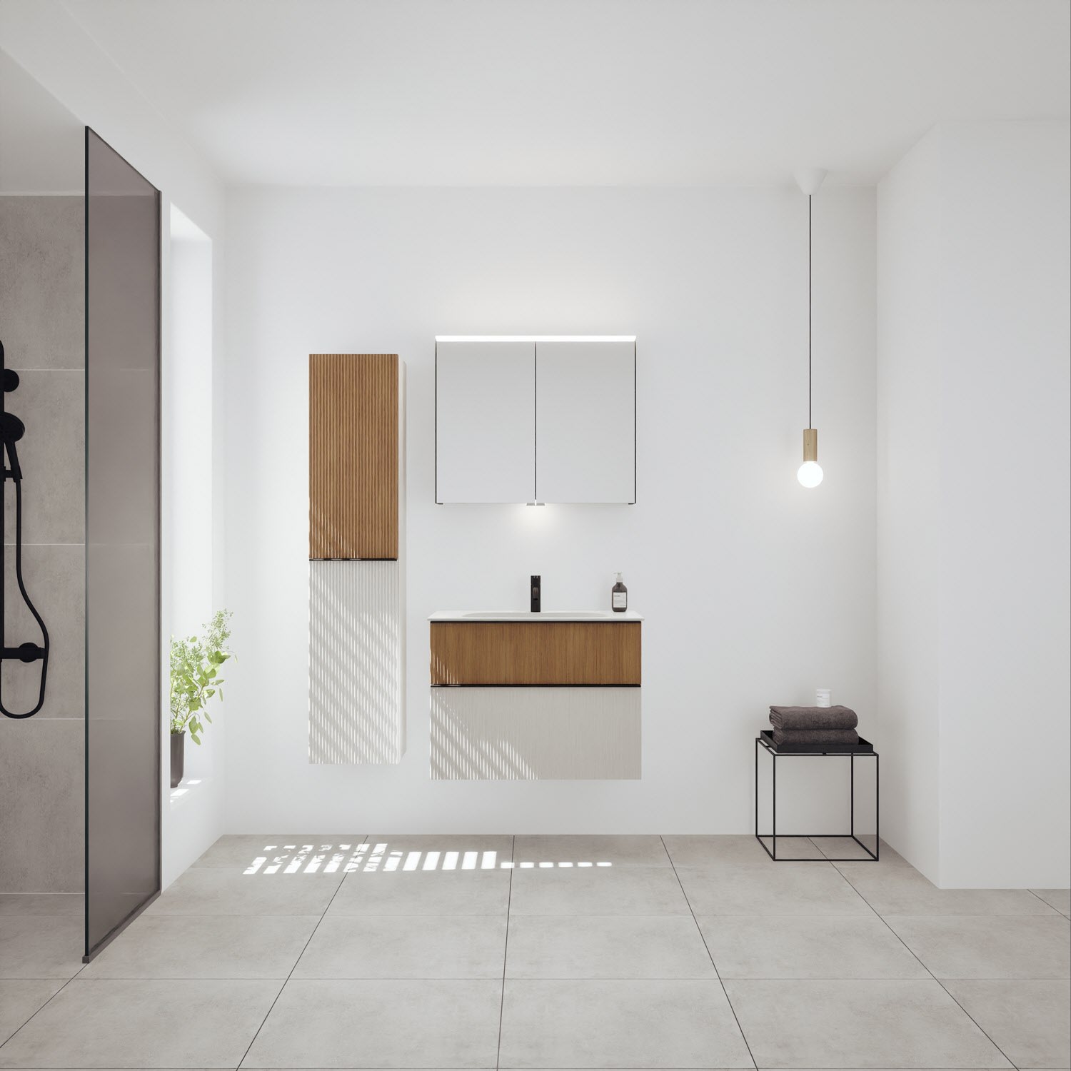 burgbad Fiumo 2.0 Spiegelschrank 80,6 cm mit LED-Aufsatzleuchte und Waschplatzbeleuchtung, 2 Spiegeltüren