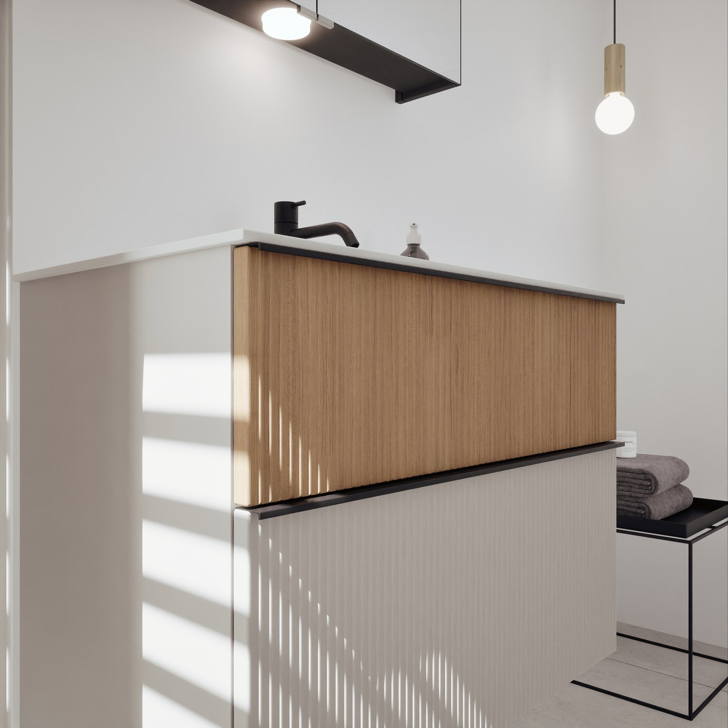 burgbad Fiumo 2.0 Mineralguss-Waschtisch mit Waschtischunterschrank 82 cm, mit Griff G0200