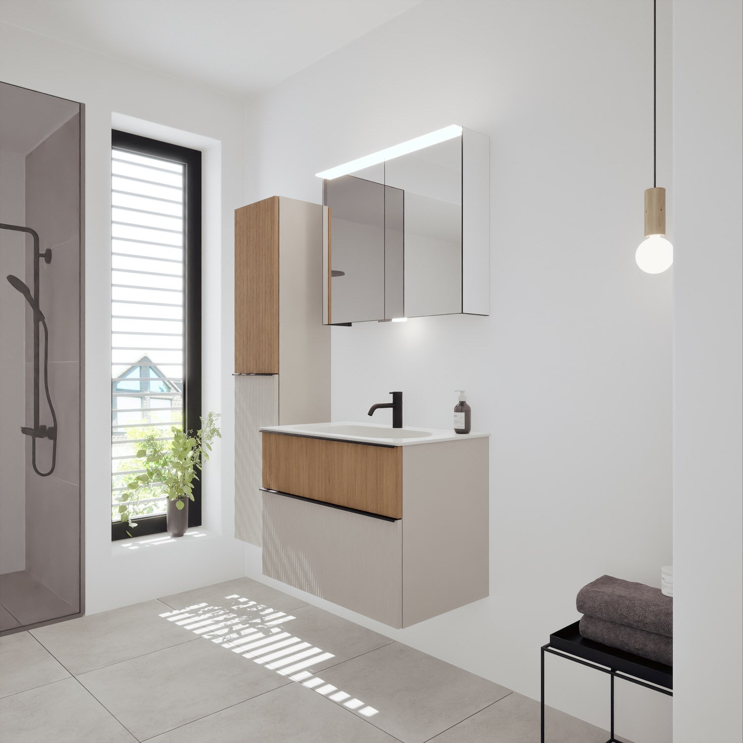 burgbad Fiumo 2.0 Spiegelschrank 80,6 cm mit LED-Aufsatzleuchte und Waschplatzbeleuchtung, 2 Spiegeltüren