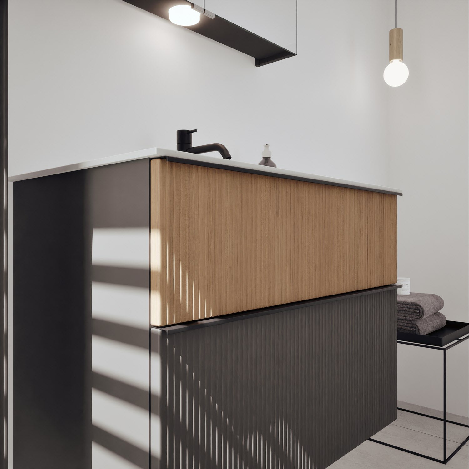 - 1 Auszug unten: 35 cm tief, mit vertikaler Struktur