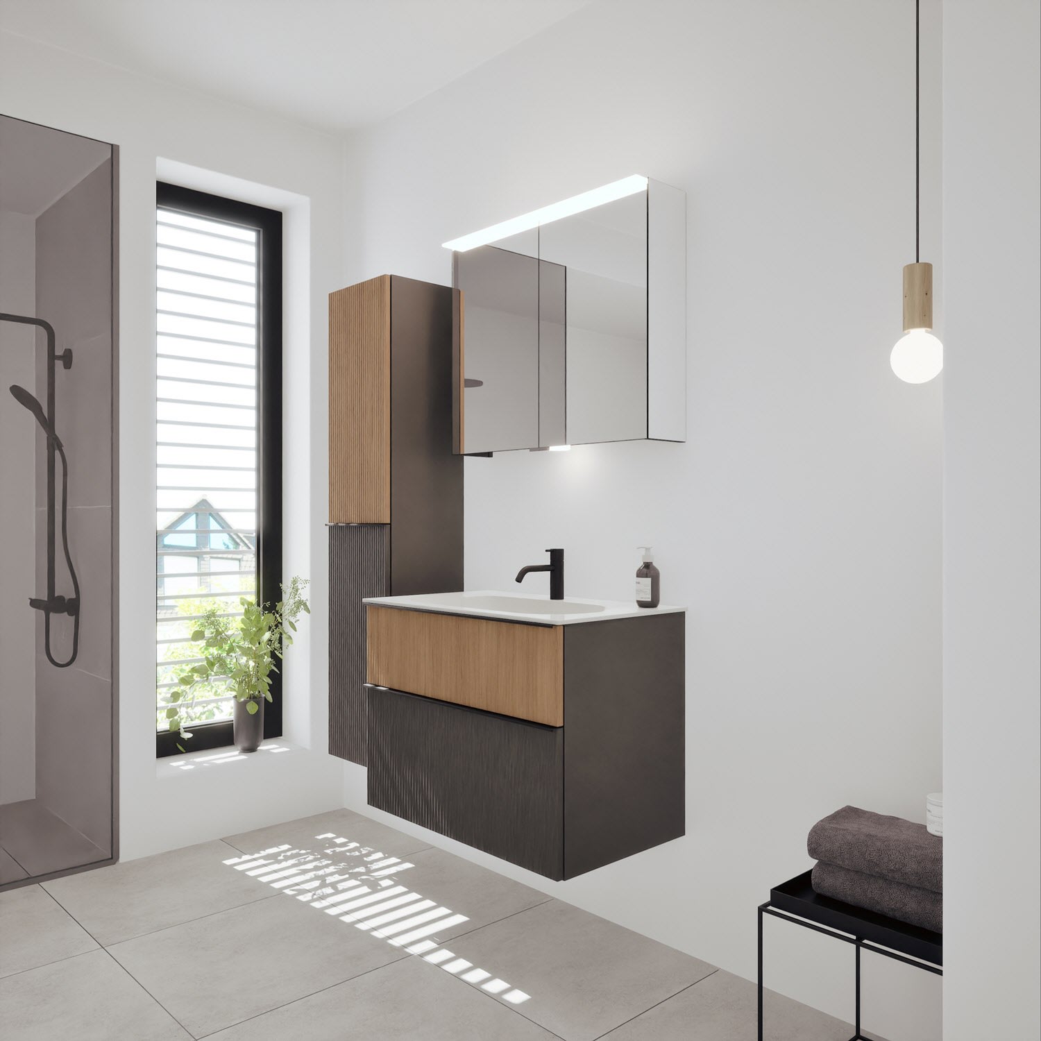 burgbad Fiumo 2.0 Mineralguss-Waschtisch mit Waschtischunterschrank 82 cm, mit Griff G0200