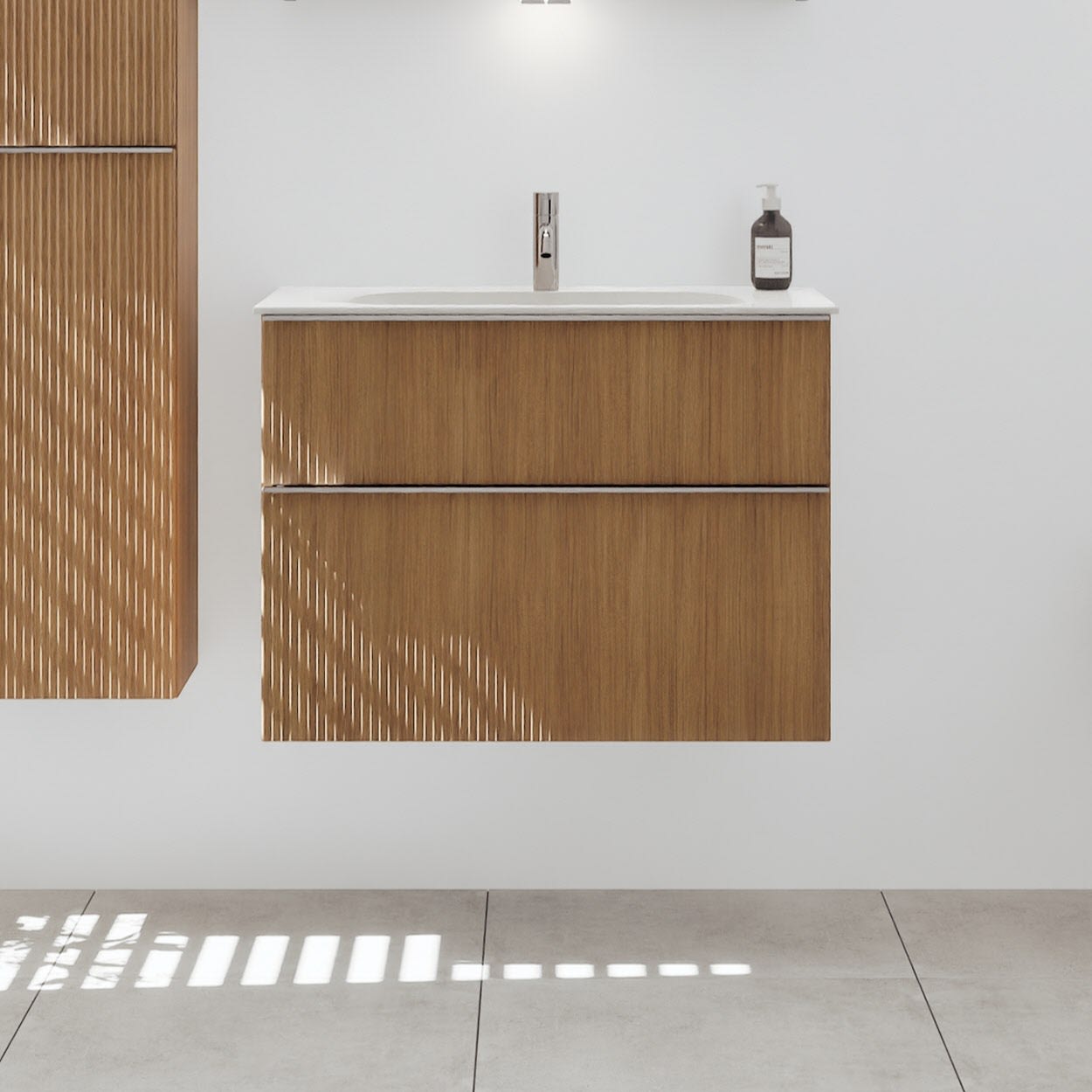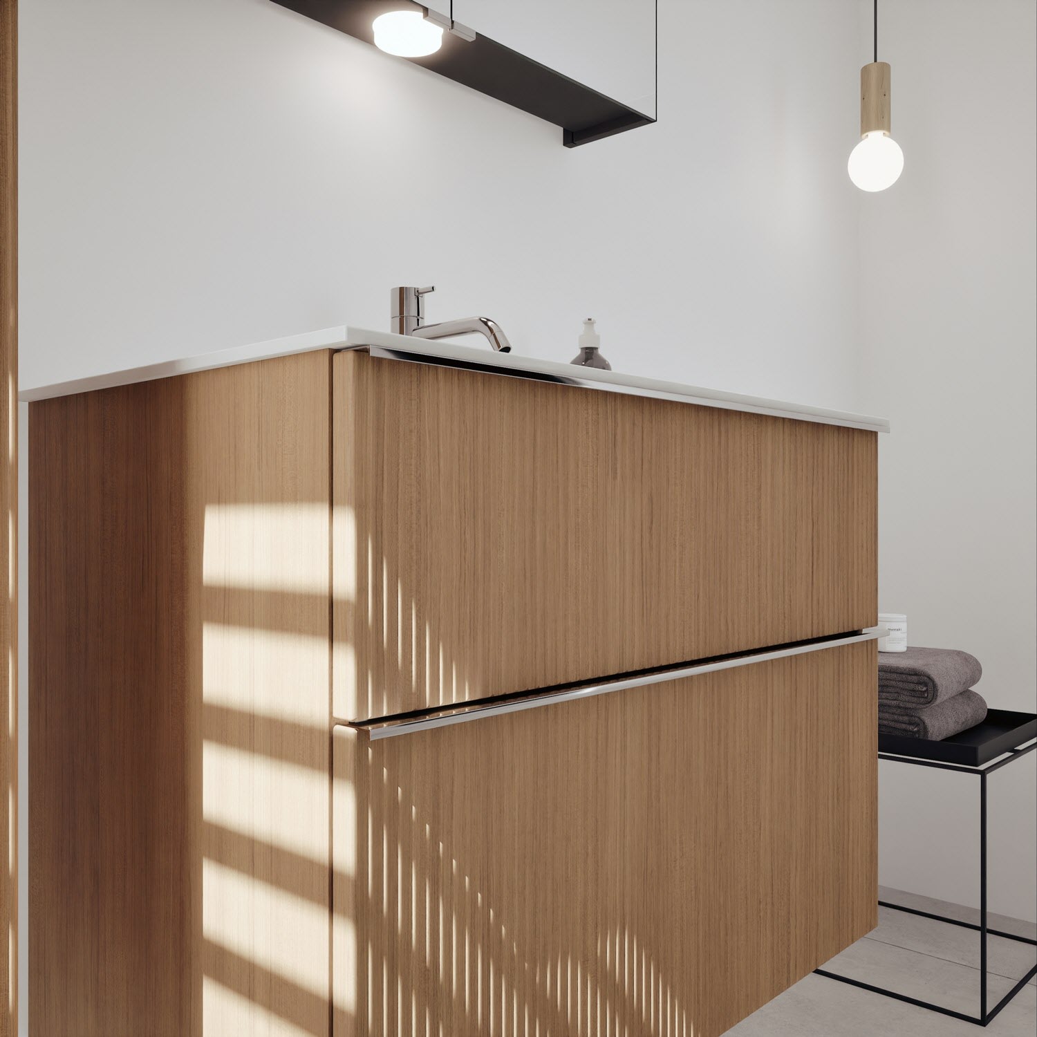 burgbad Fiumo 2.0 Mineralguss-Waschtisch mit Waschtischunterschrank 82 cm, mit Griff G0146