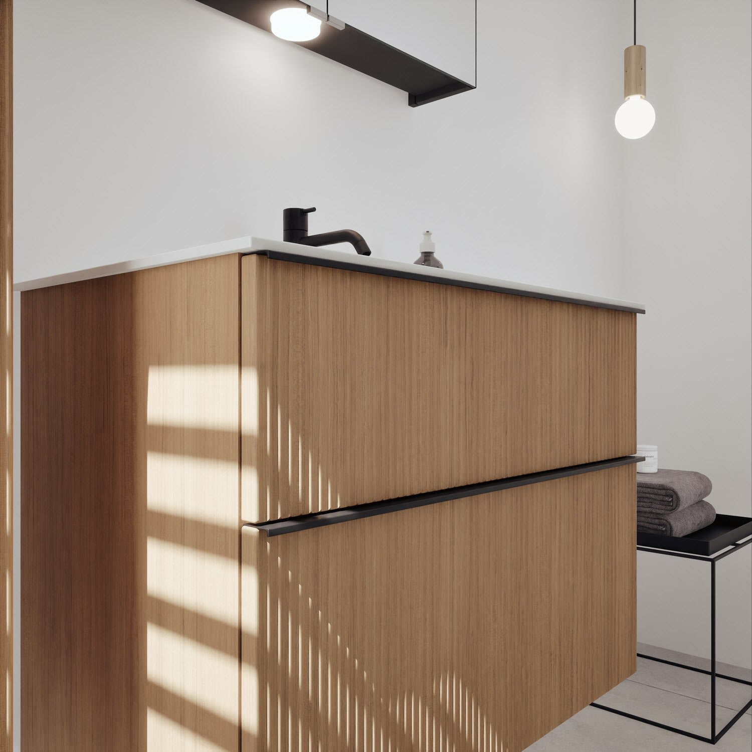 - 1 Auszug unten: 35 cm tief, mit vertikaler Struktur
