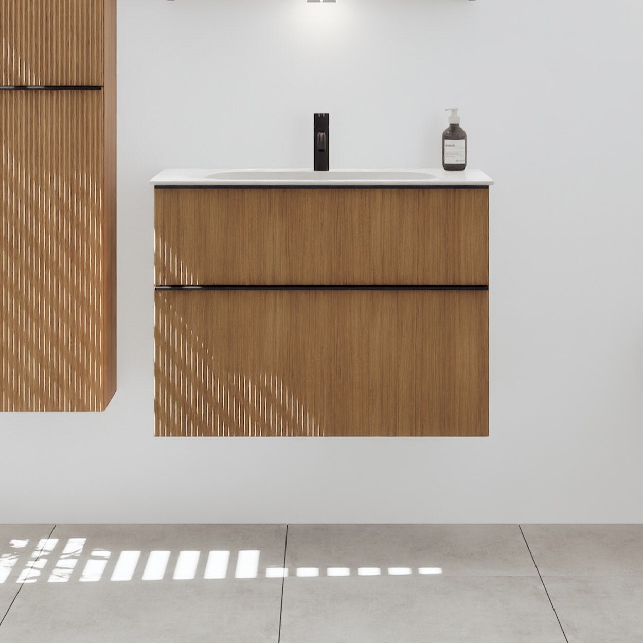 burgbad Fiumo 2.0 Mineralguss-Waschtisch mit Waschtischunterschrank 82 cm, mit Griff G0200