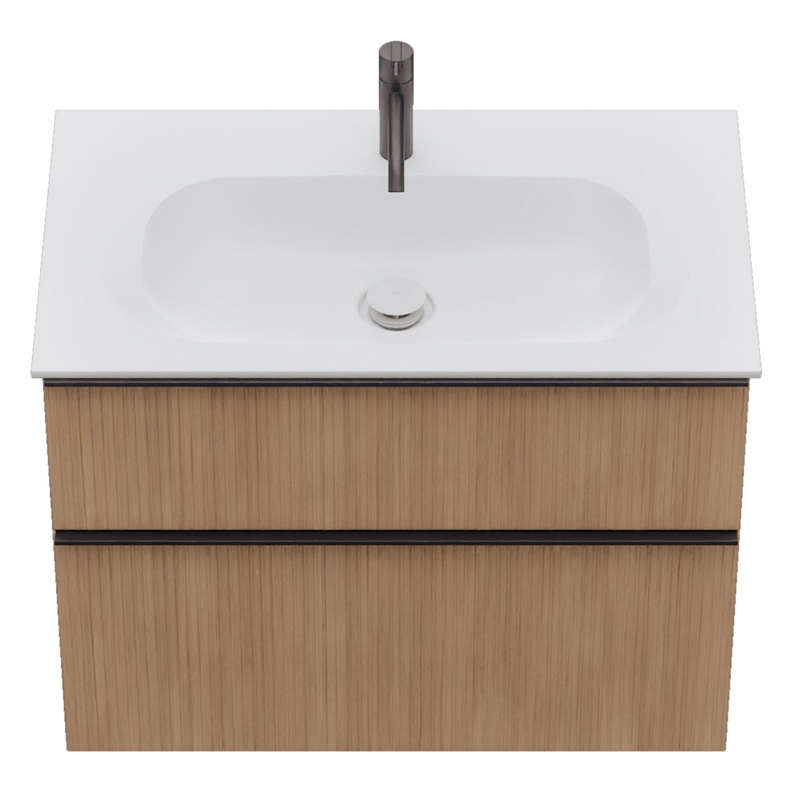- 1 Schublade oben: 35 cm tief, mit vertikaler Struktur inkl. Siphonausschnitt und Inneneinteilung