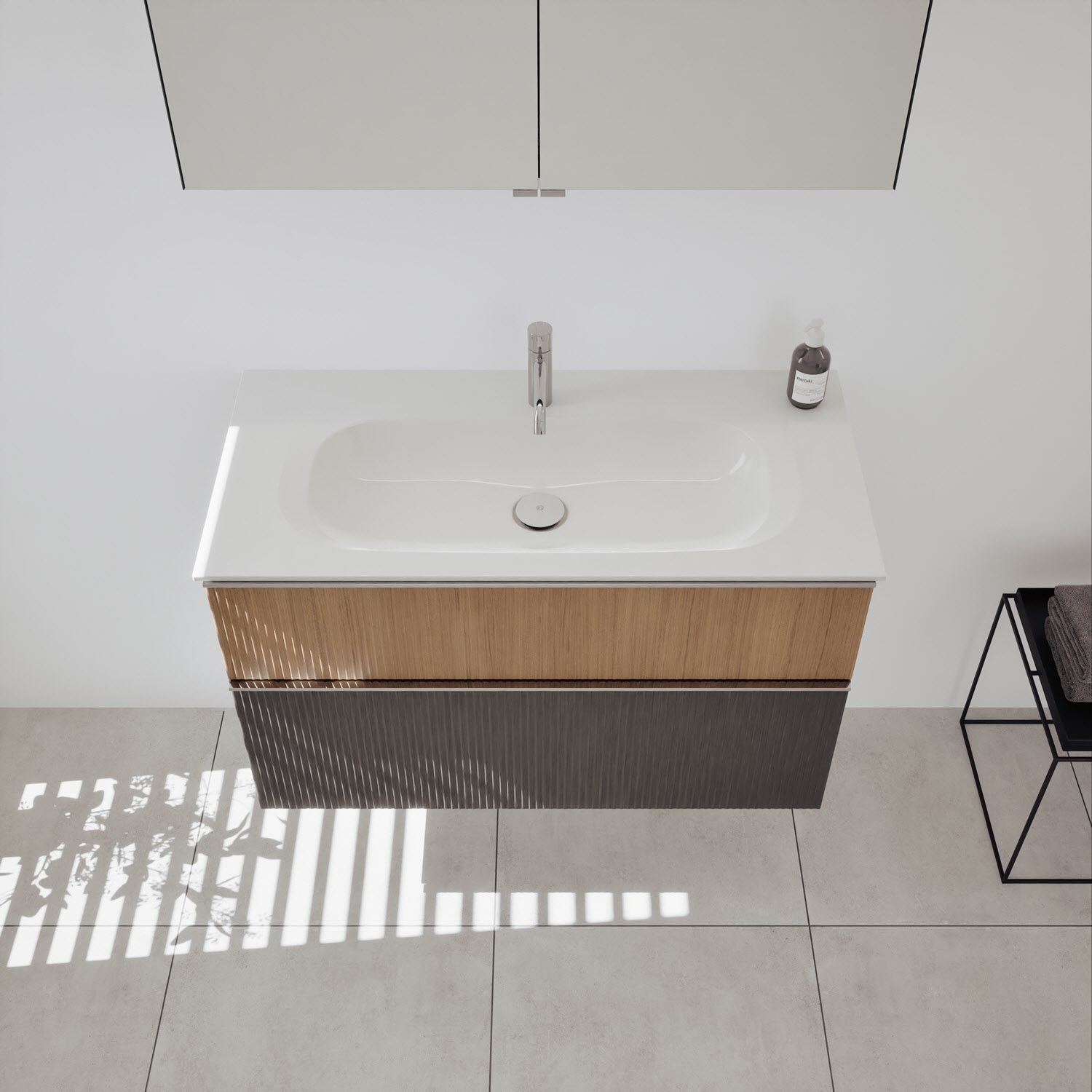 burgbad Fiumo 2.0 Mineralguss-Waschtisch mit Waschtischunterschrank 102 cm, mit Griff G0146