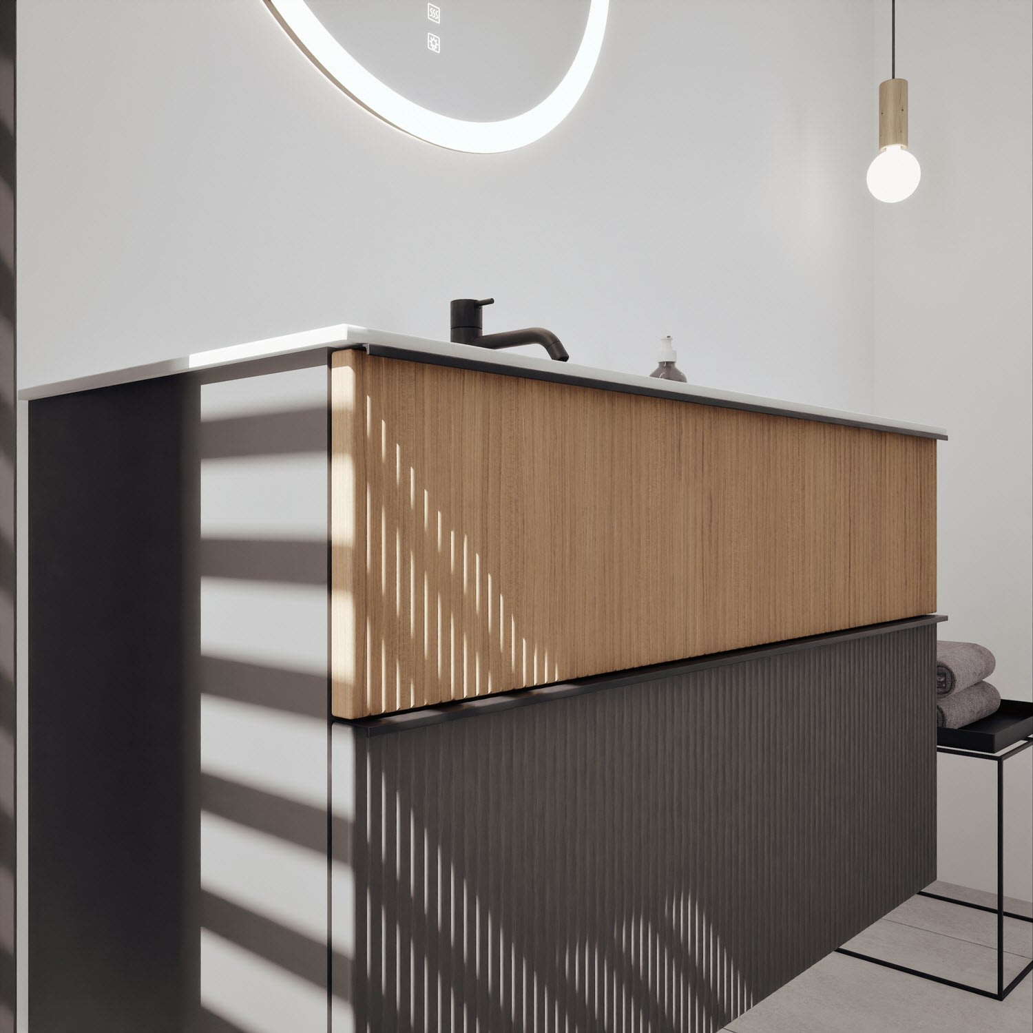 burgbad Fiumo 2.0 Mineralguss-Waschtisch mit Waschtischunterschrank 102 cm, mit Griff G0200