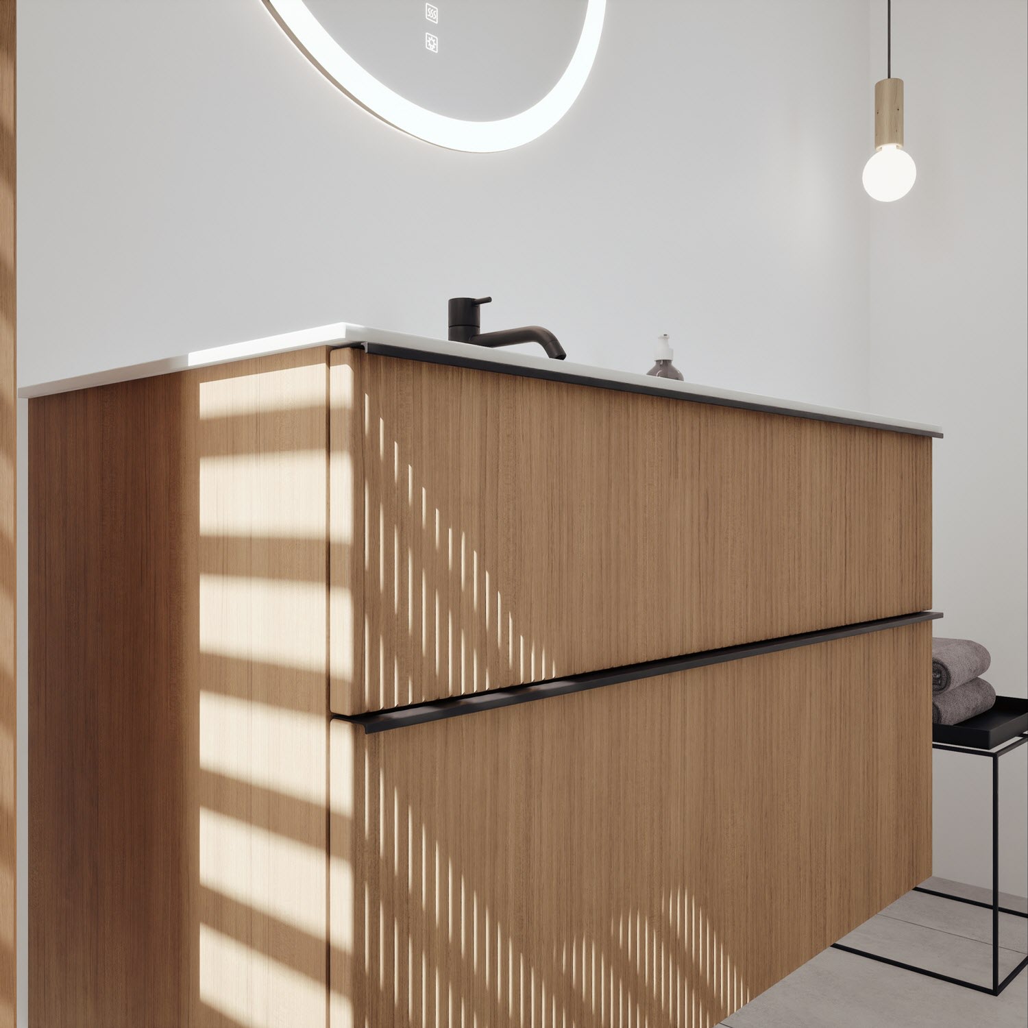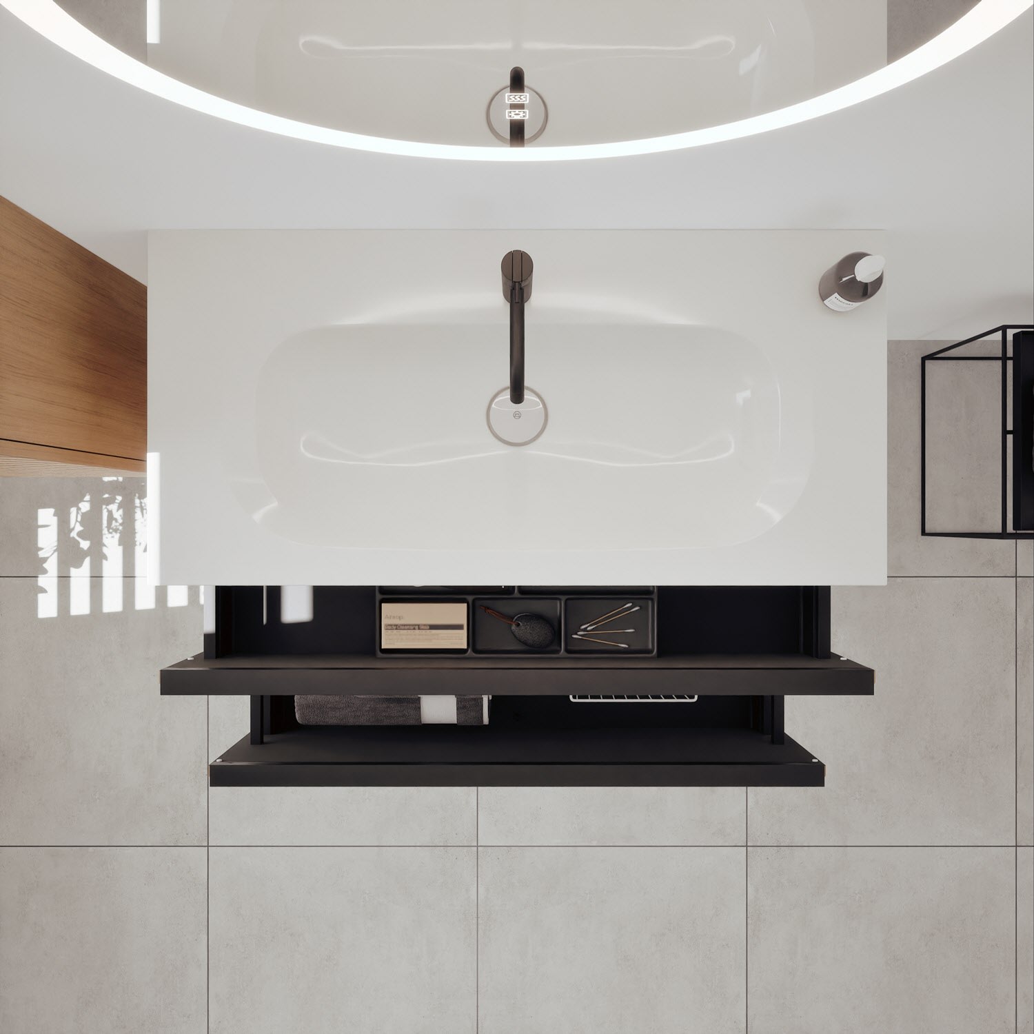 burgbad Fiumo 2.0 Mineralguss-Waschtisch mit Waschtischunterschrank 102 cm, mit Griff G0200