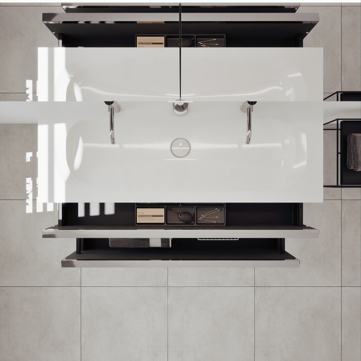 burgbad Fiumo 2.0 Spiegelschrank 120,6 cm mit LED-Aufsatzleuchte und Waschplatzbeleuchtung, 2 Spiegeltüren