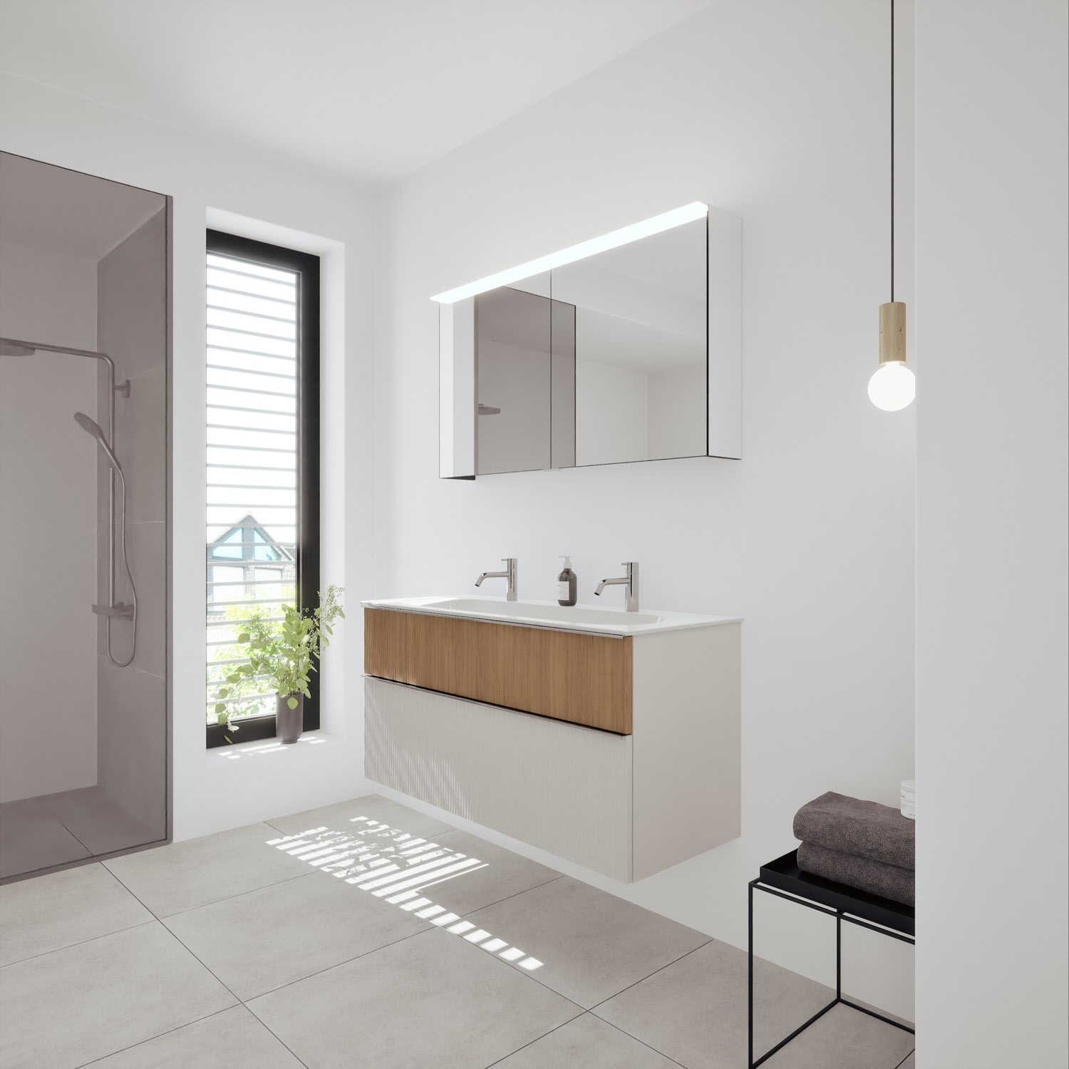 burgbad Fiumo 2.0 Spiegelschrank 120,6 cm mit LED-Aufsatzleuchte und Waschplatzbeleuchtung, 2 Spiegeltüren