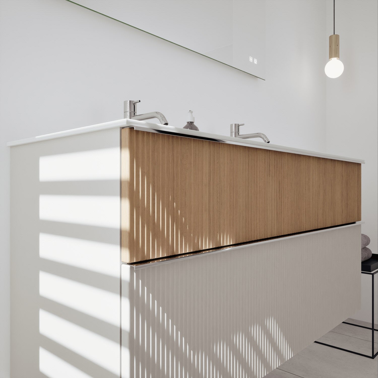 burgbad Fiumo 2.0 Mineralguss-Waschtisch mit Waschtischunterschrank 122 cm, mit Griff G0146