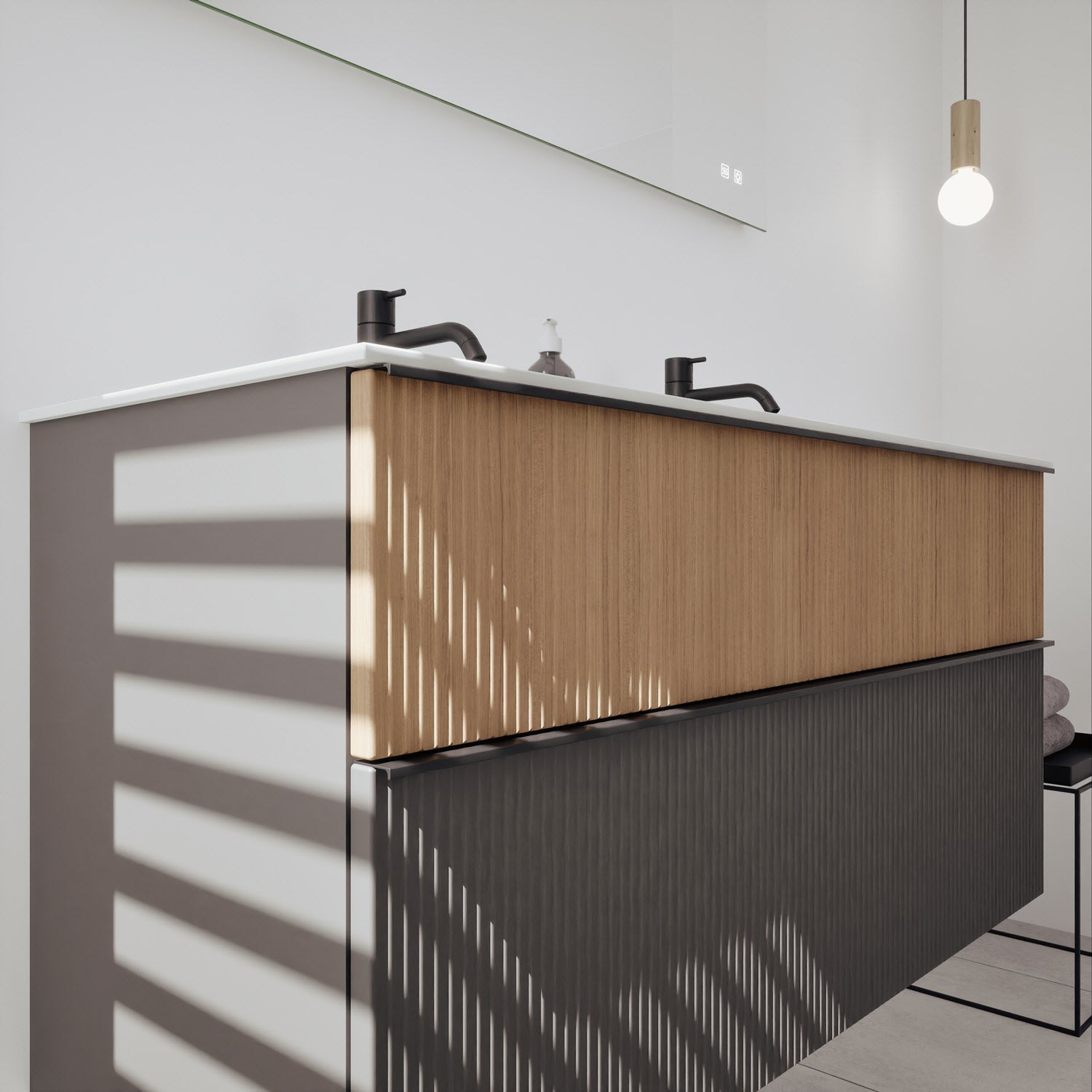 burgbad Fiumo 2.0 Mineralguss-Waschtisch mit Waschtischunterschrank 122 cm, mit Griff G0200