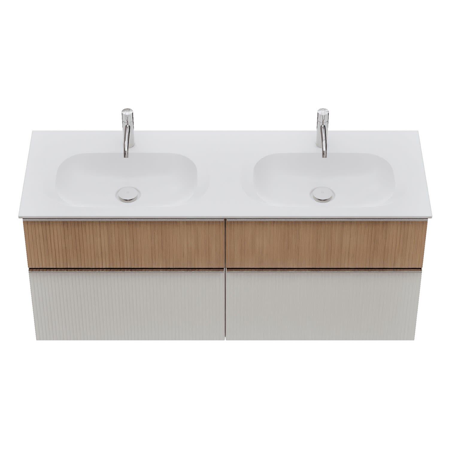 burgbad Fiumo 2.0 Mineralguss-Waschtisch mit Waschtischunterschrank 142 cm, mit Griff G0146