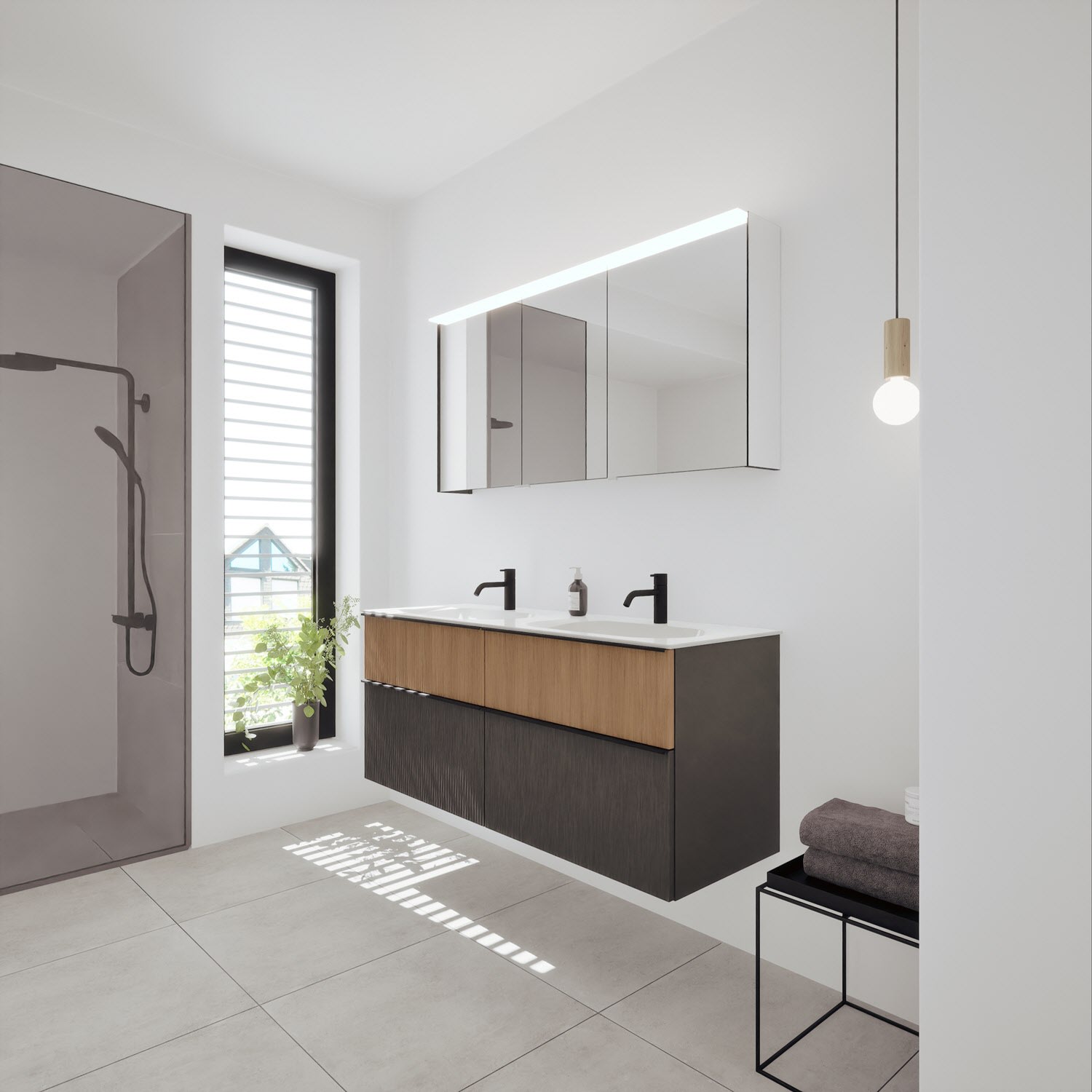 burgbad Fiumo 2.0 Spiegelschrank 140,6 cm mit LED-Aufsatzleuchte und Waschplatzbeleuchtung, 3 Spiegeltüren