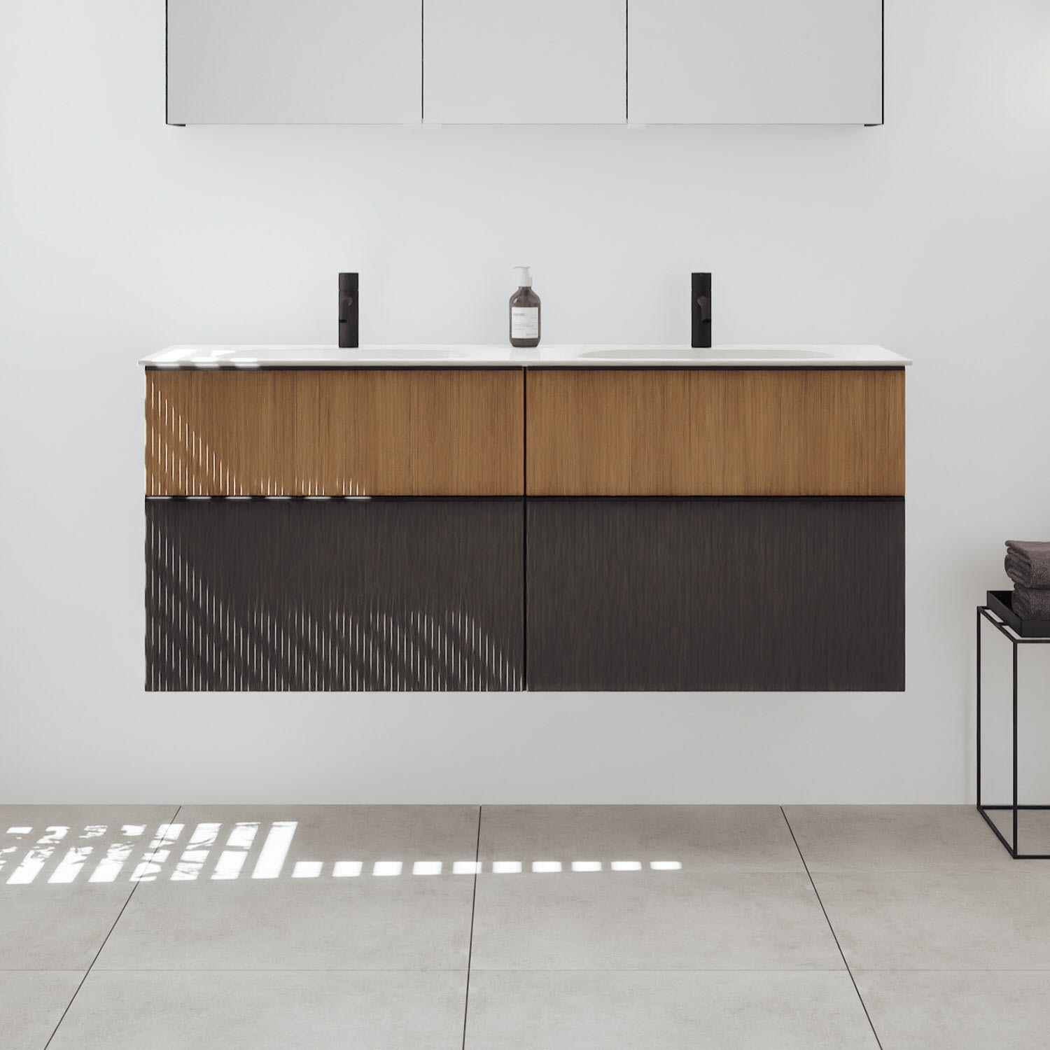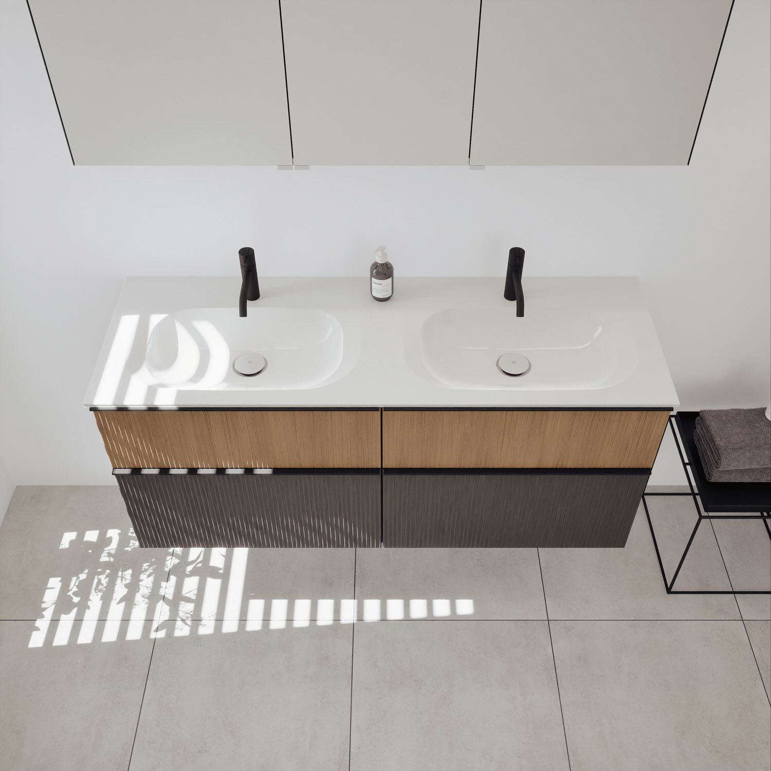 burgbad Fiumo 2.0 Mineralguss-Waschtisch mit Waschtischunterschrank 142 cm, mit Griff G0200
